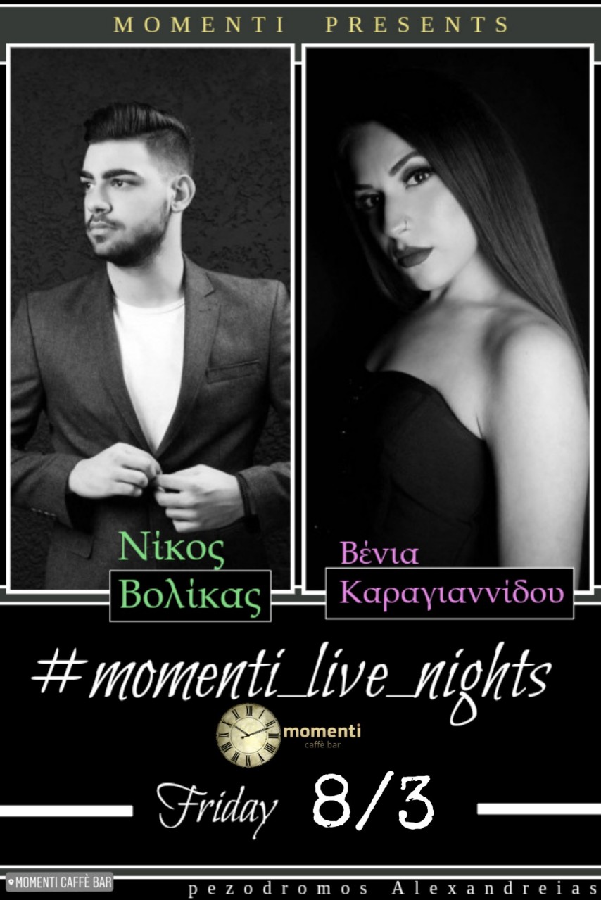 Γεμίζει τα μαγαζιά της Θεσσαλονίκης και ήρθε η ώρα να παρουσιαστεί και στο κοινό της Αλεξάνδρειας με πλούσια μουσική γνώση και ρεπερτόριο. Μαζί του η πανέμορφη Βένια Καραγιαννίδου που θα δώσει τη δική της «νότα» στα live του momenti.