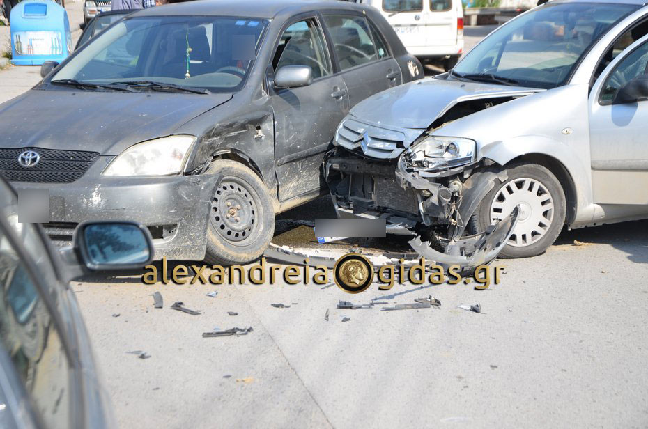 Τροχαίο ατύχημα σημειώθηκε το μεσημέρι της Τετάρτης 20 Μαρτίου μπροστά στο δημαρχείο Αλεξάνδρειας.