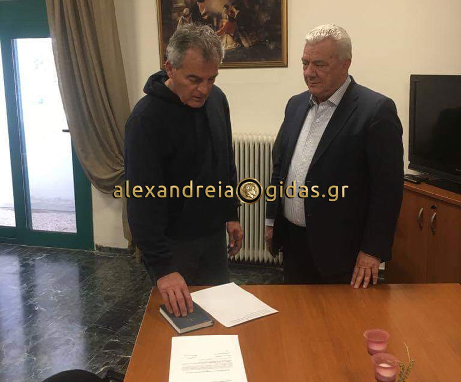 Ο Βασίλης Παπαδημητρίου ορκίστηκε το πρωί της Τετάρτης 20 Μαρτίου στο γραφείο του δημάρχου Παναγιώτη Γκυρίνη από όπου και οι εικόνες μας: