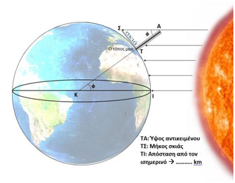 Υπολογισμός ακτίνας της Γης (20-3-2019 Εαρινή Ισημερία)