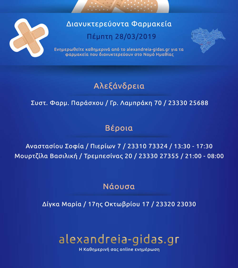 Εφημερεύοντα – διανυκτερεύοντα φαρμακεία Ημαθίας Πέμπτη 28 Μαρτίου