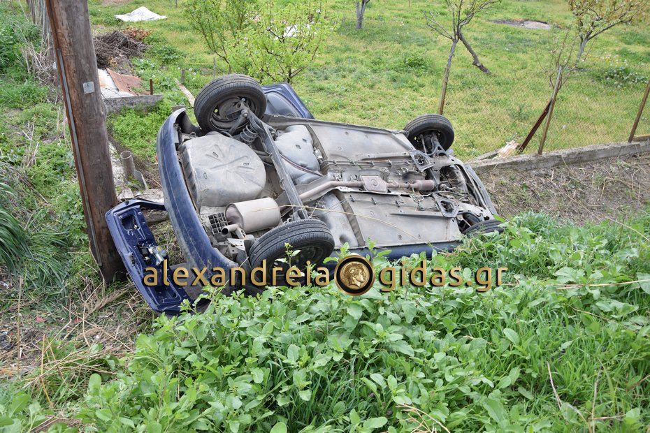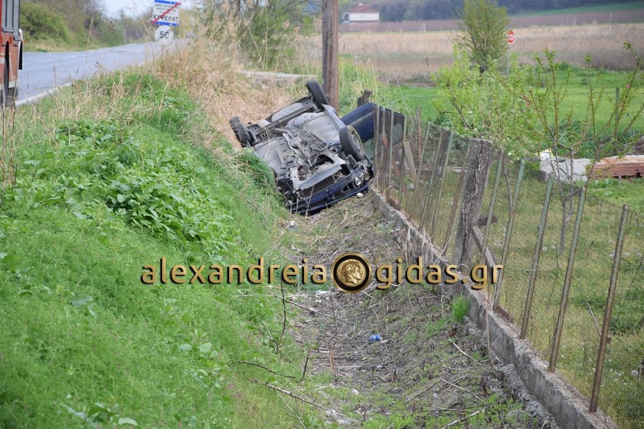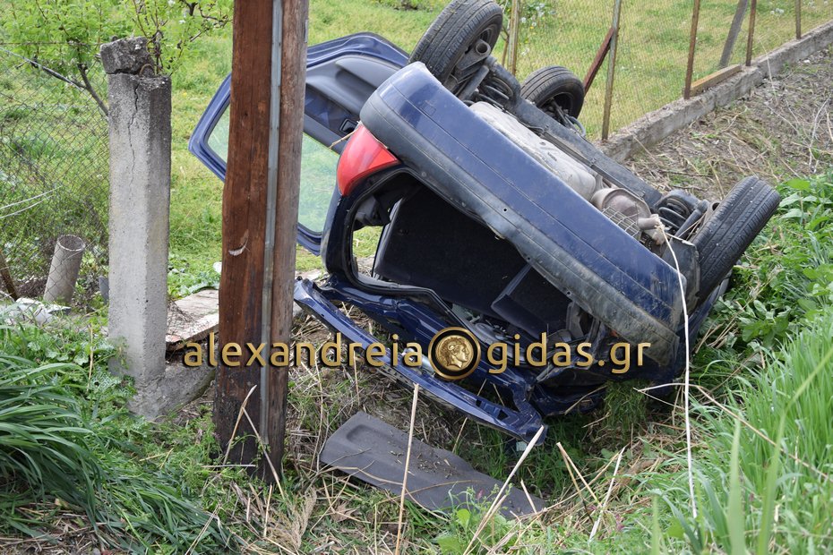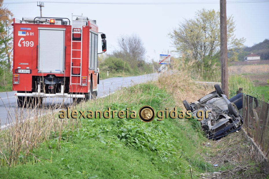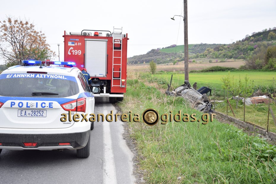 Χρειάστηκε η παρέμβαση της πυροσβεστικής υπηρεσίας Αλεξάνδρειας για να απεγκλωβιστεί ο οδηγός από το όχημα ο οποίος στη συνέχεια μεταφέρθηκε με το ασθενοφόρο του Κέντρου Υγείας Αλεξάνδρειας στο Νοσοκομείο της Βέροιας χωρίς να τραυματιστεί.