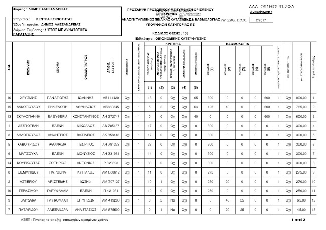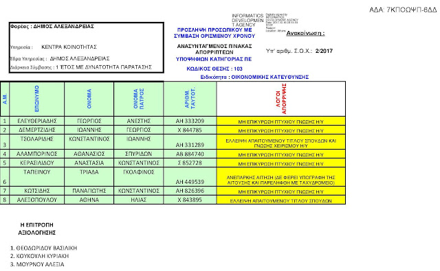 Ο δήμος Αλεξάνδρειας ανακοινώνει τα ονόματα των επιτυχόντων στις ειδικότητες Κοινωνικών Επιστημών, Ψυχολόγων και Οικονομικής Κατεύθυνσης για τη στελέχωση του Κέντρου Κοινότητας του Δήμου.