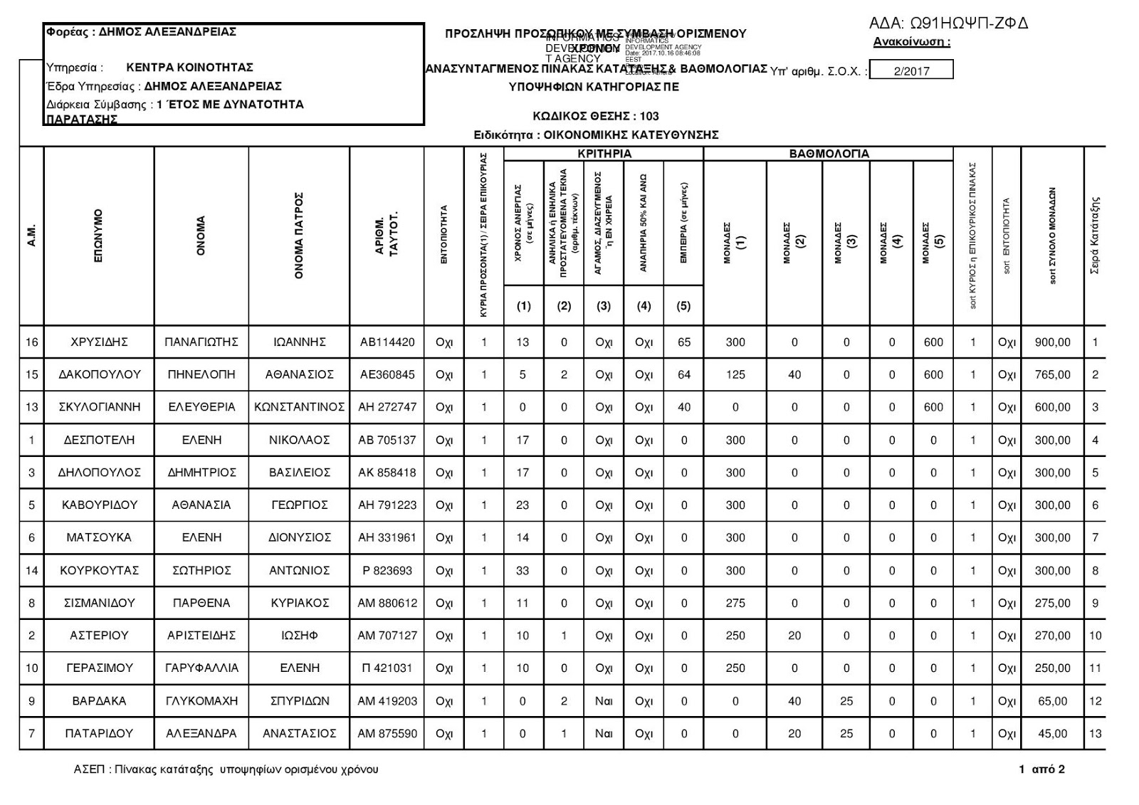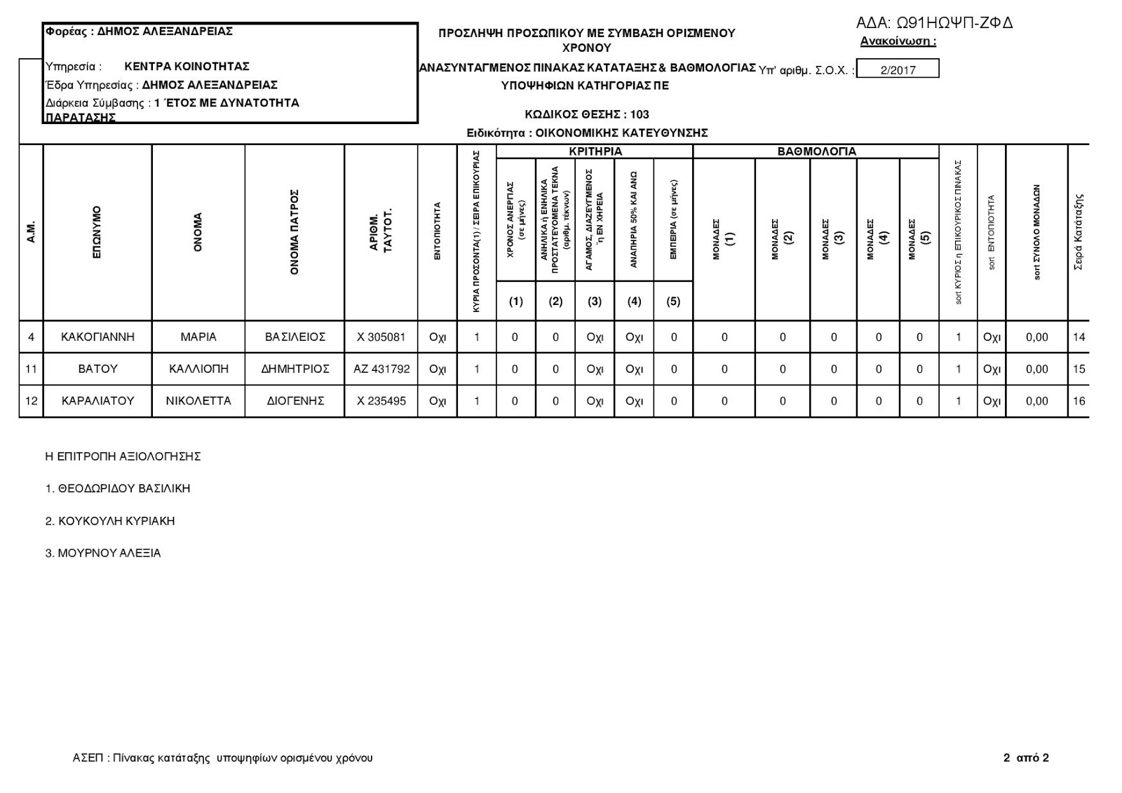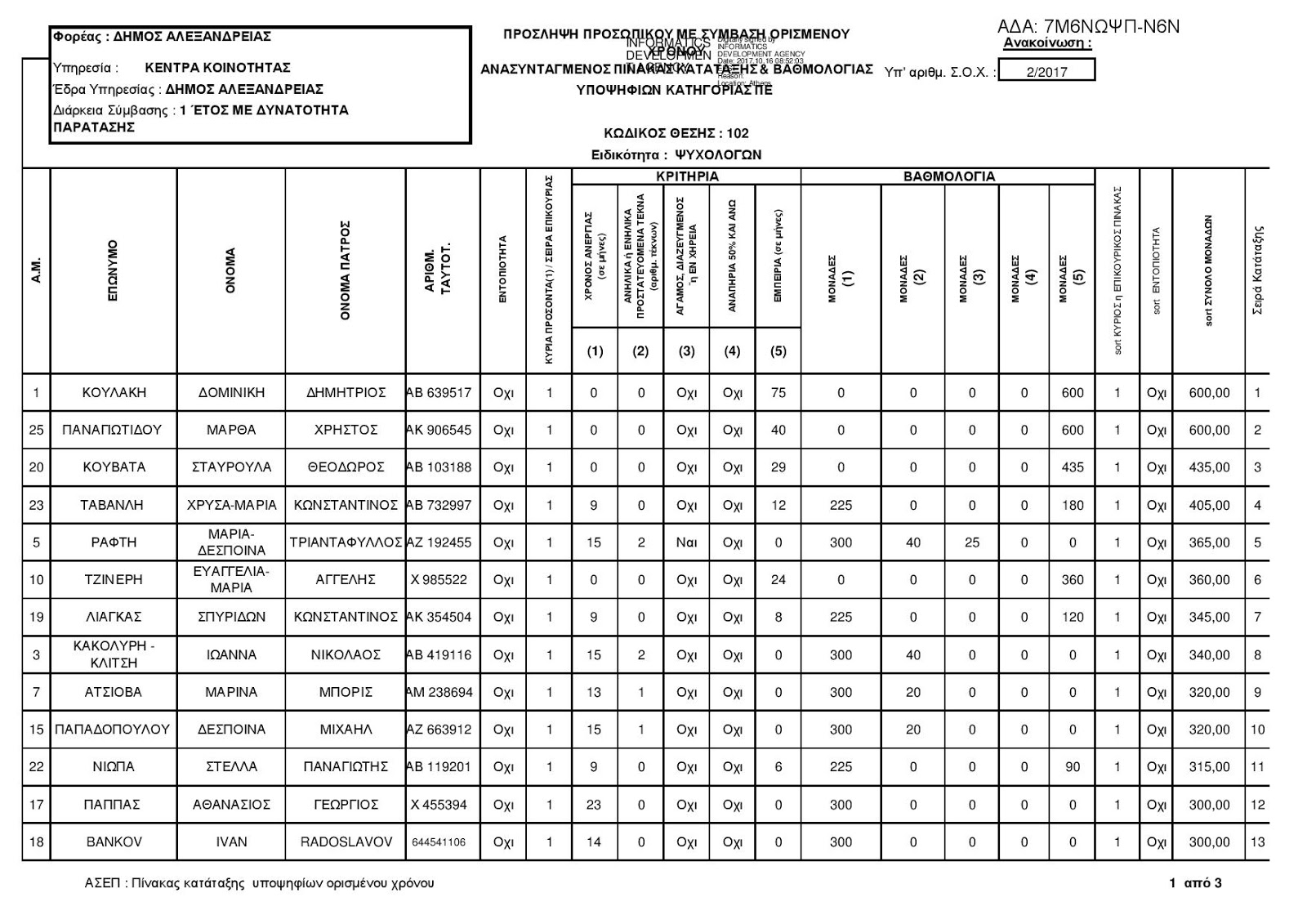 Ο δήμος Αλεξάνδρειας ανακοινώνει τα ονόματα των επιτυχόντων στις ειδικότητες Κοινωνικών Επιστημών, Ψυχολόγων και Οικονομικής Κατεύθυνσης για τη στελέχωση του Κέντρου Κοινότητας του Δήμου.