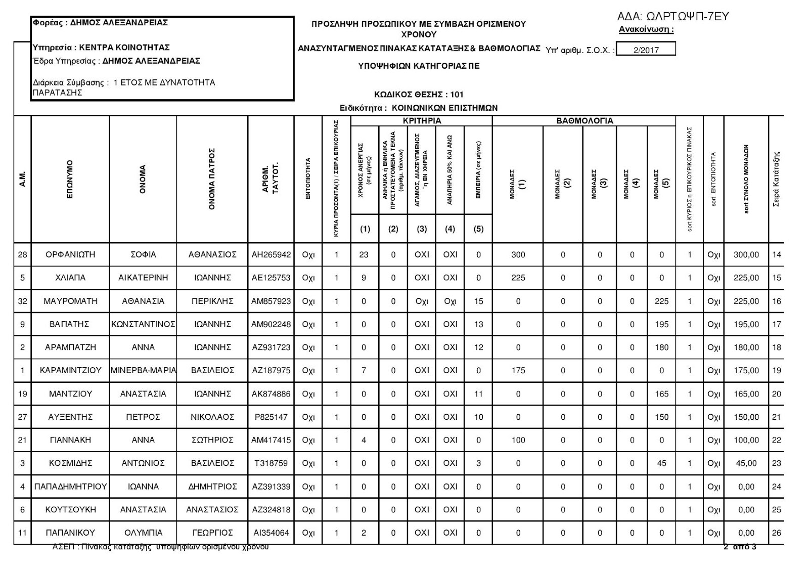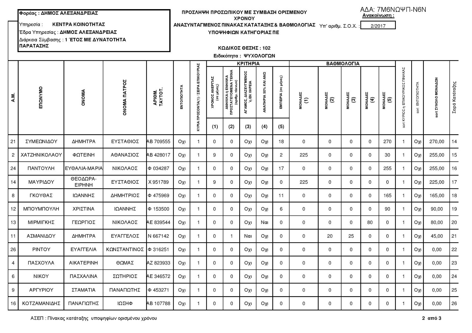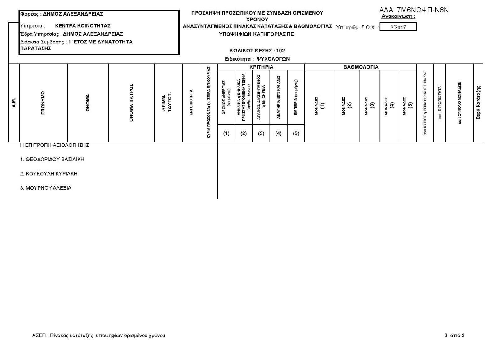 Ο δήμος Αλεξάνδρειας ανακοινώνει τα ονόματα των επιτυχόντων στις ειδικότητες Κοινωνικών Επιστημών, Ψυχολόγων και Οικονομικής Κατεύθυνσης για τη στελέχωση του Κέντρου Κοινότητας του Δήμου.