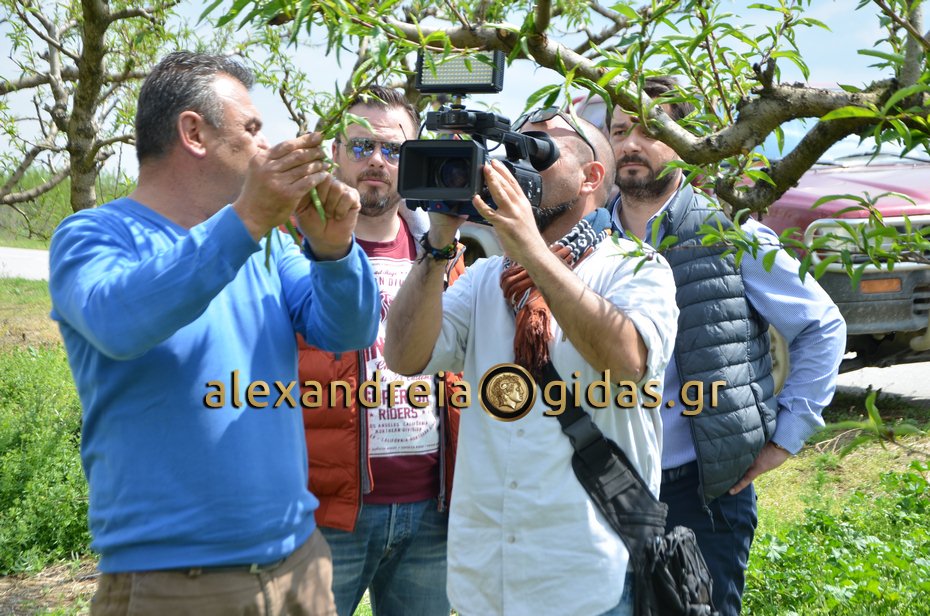 Εκεί οι δημοσιογράφοι του τηλεοπτικού σταθμού συνομίλησαν με τους αγρότες, τον πρόεδρο του Αγροτικού Συλλόγου Βέροιας Τάσο Χαλκίδη αλλά και με τον πολιτευτή της Ν.Δ. Τάσο Μπαρτζώκα ο οποίος κατάγεται από την Μελίκη και βρισκόταν στο σημείο με τους αγρότες για να μιλήσει μαζί τους για το πρόβλημα με το χαλάζι.