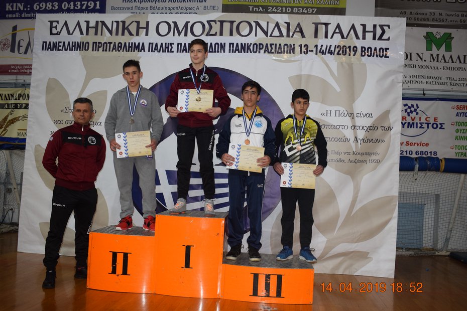 Το ασημένιο μετάλλιο στην πάλη κατέκτησε ο Σωτήρης Στογιαννόπουλος. Ο αθλητής από την Ξεχασμένη του δήμου Αλεξάνδρειας μετά από μία δύσκολη κλήρωση, ανέβηκε στο δεύτερο σκαλί του βάθρου με την ομάδα του Παλαιστικού Συλλόγου Ευκαρπίας που πήρε τη πρώτη θέση στη διοργάνωση κάνοντας το 4 στα 4 στα πρωταθλήματα.