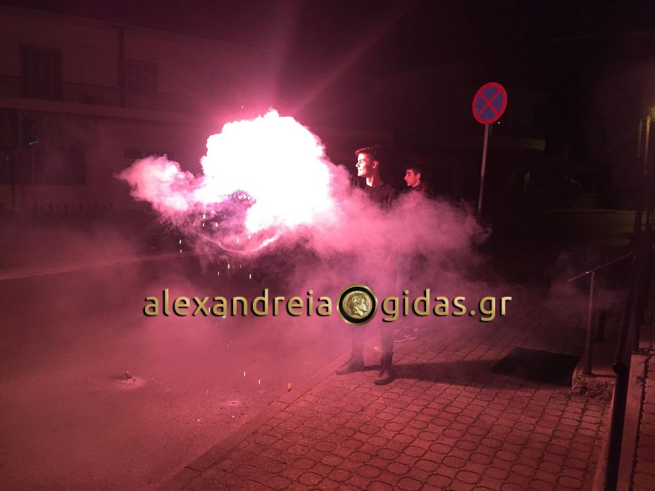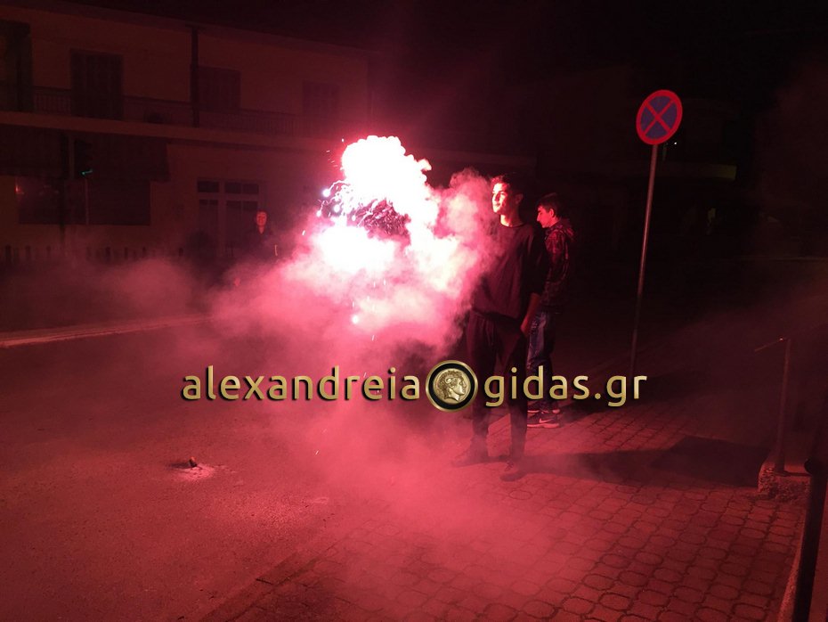 Το ίδιο έγινε και στα Καβάσιλα του δήμου Αλεξάνδρειας όπου οι φίλοι της ομάδας έξω από το καφέ ΟΝΑΡ άναψαν πυρσούς και βεγγαλικά ξεκινώντας τους πανηγυρισμούς.