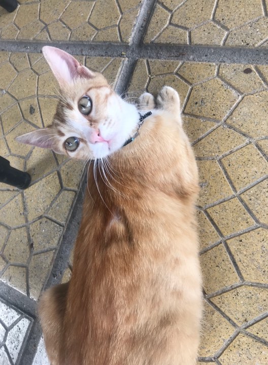 Ένας γάτο, που προφανώς χάθηκε (φοράει αλυσίδα στον λαιμό) βρέθηκε πολύ φιλικός στο γνωστό καφέ.