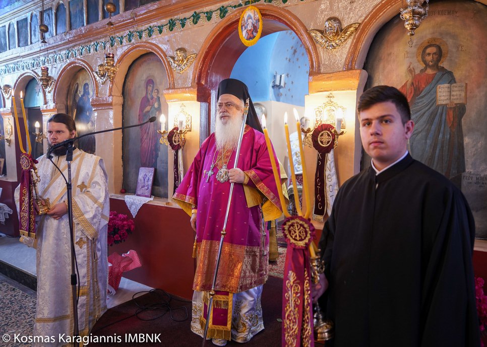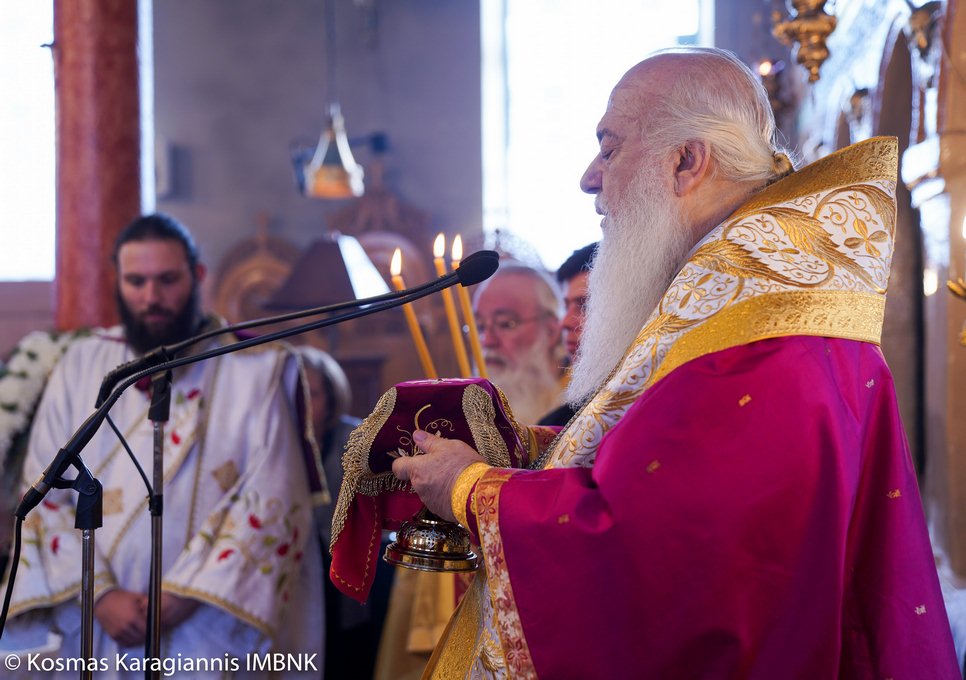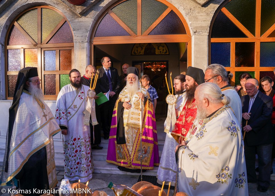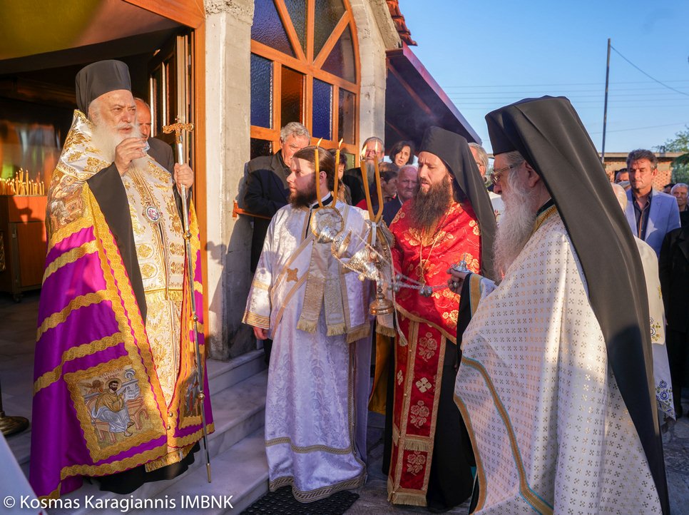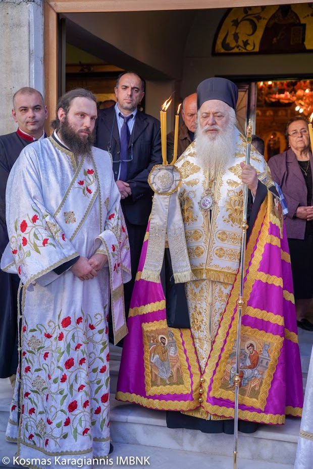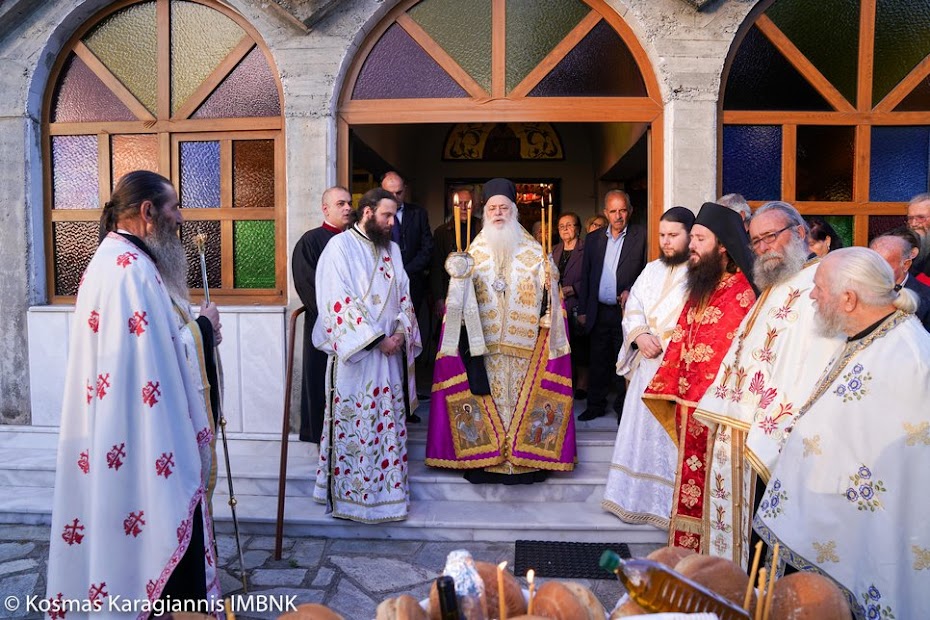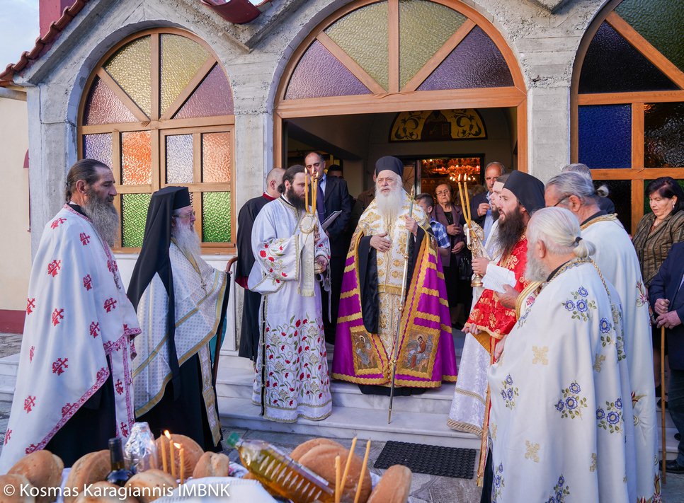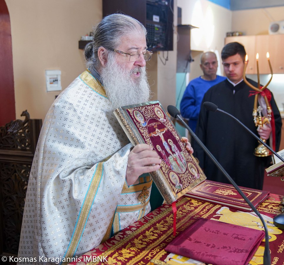 Το εσπέρας της εορτής ο Σεβασμιώτατος Μητροπολίτης Βεροίας, Ναούσης και Καμπανίας κ. Παντελεήμων χοροστάτησε στον Πανηγυρικό Εσπερινό και κήρυξε τον θείο λόγο στο Ιερό Παρεκκλήσιο των εορταζόντων Αγίων στο Λουτρό.