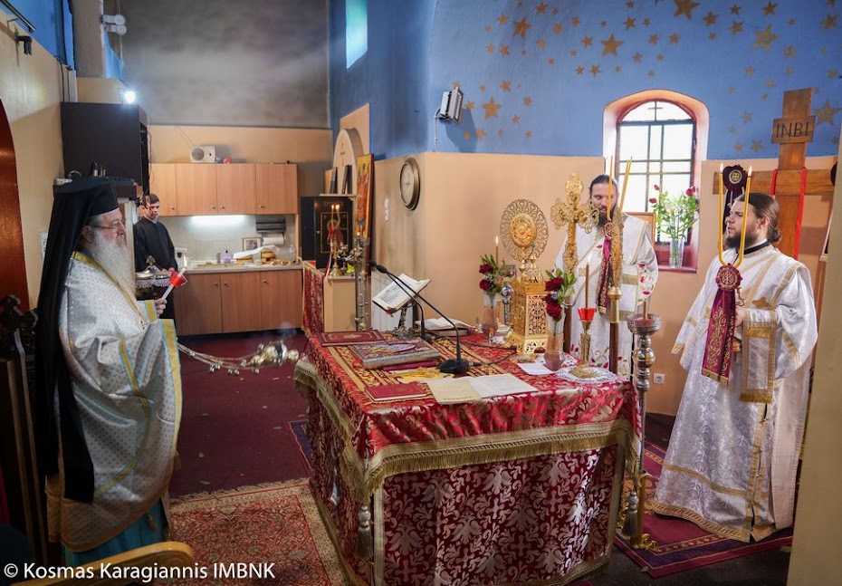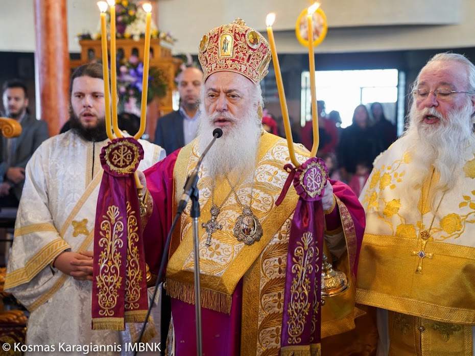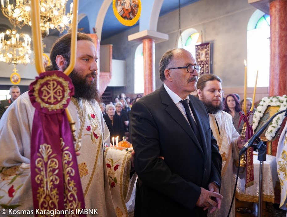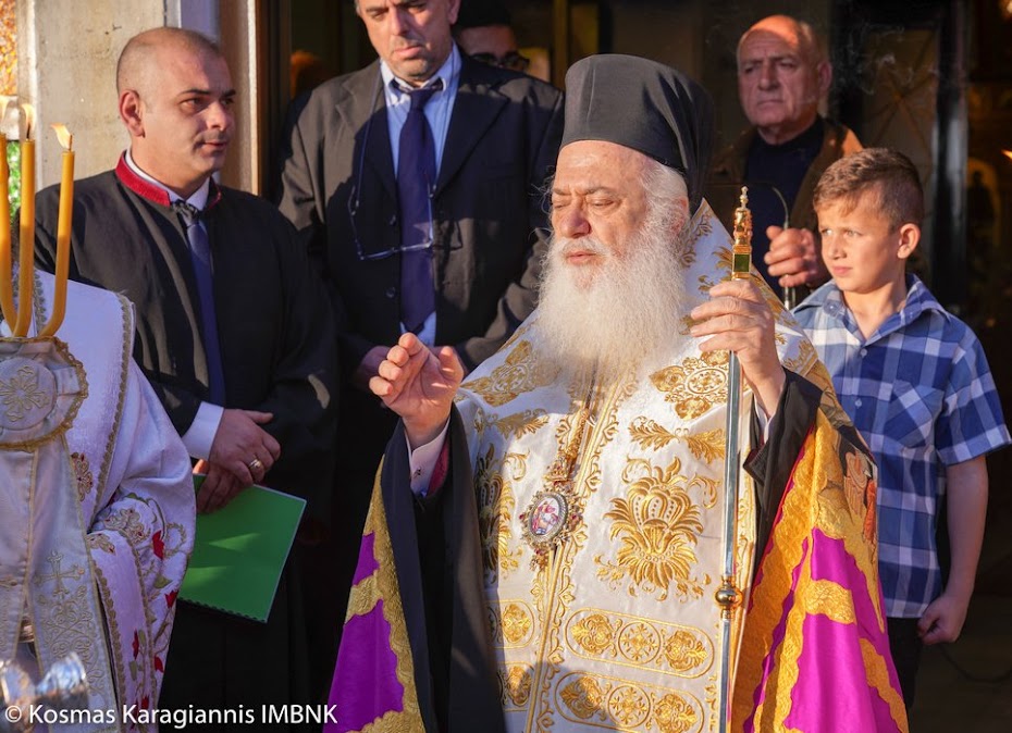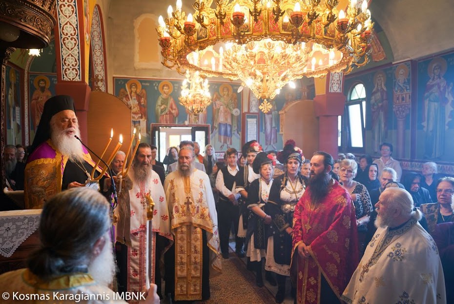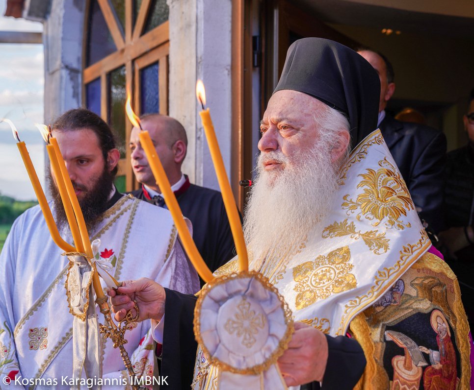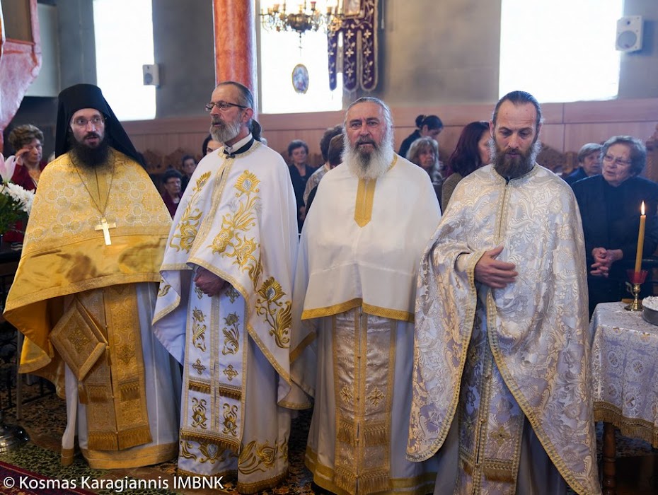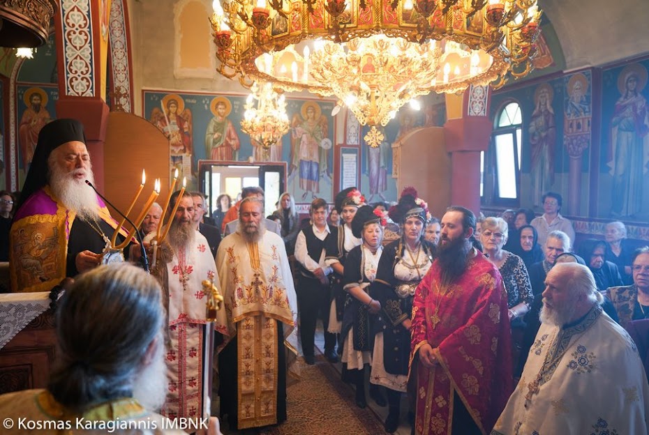 Το εσπέρας της εορτής ο Σεβασμιώτατος Μητροπολίτης Βεροίας, Ναούσης και Καμπανίας κ. Παντελεήμων χοροστάτησε στον Πανηγυρικό Εσπερινό και κήρυξε τον θείο λόγο στο Ιερό Παρεκκλήσιο των εορταζόντων Αγίων στο Λουτρό.