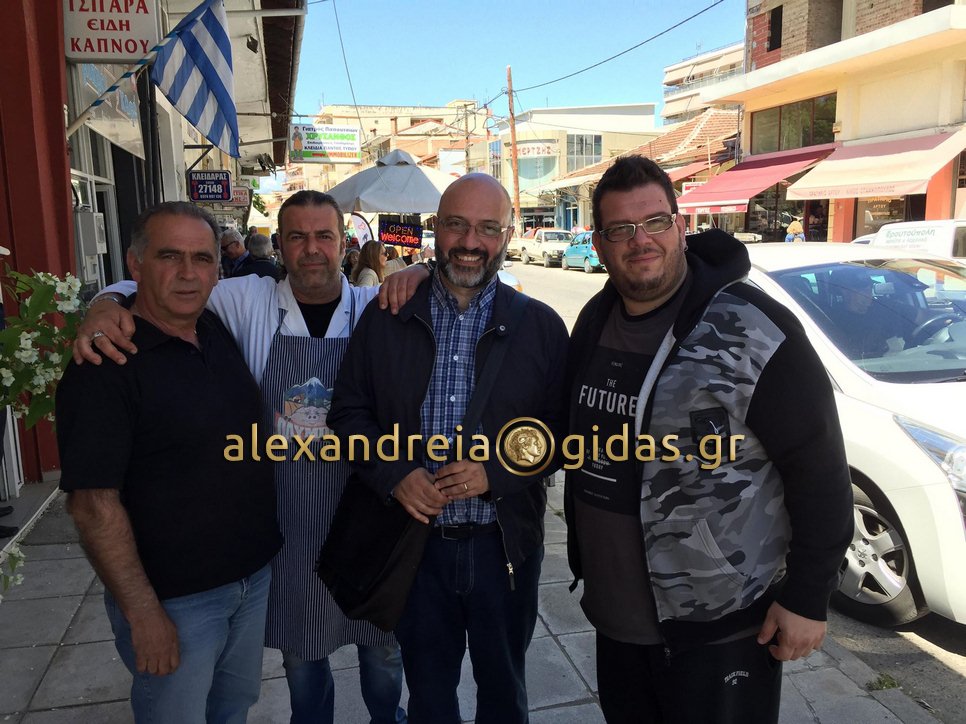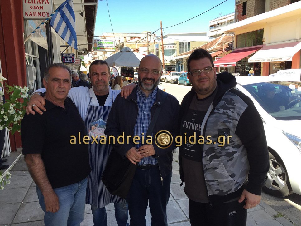 Τον συναντήσαμε στην παρέα του πρώην δημάρχου Αλεξάνδρειας και υποψήφιου βουλευτή με το ΚΙΝΑΛ Μπάμπη Γκιόνογλου, μαζί με τον τραγουδιστή Φώντα Λαφαζάνη και τον επιχειρηματία Κώστα Καμπάκη.