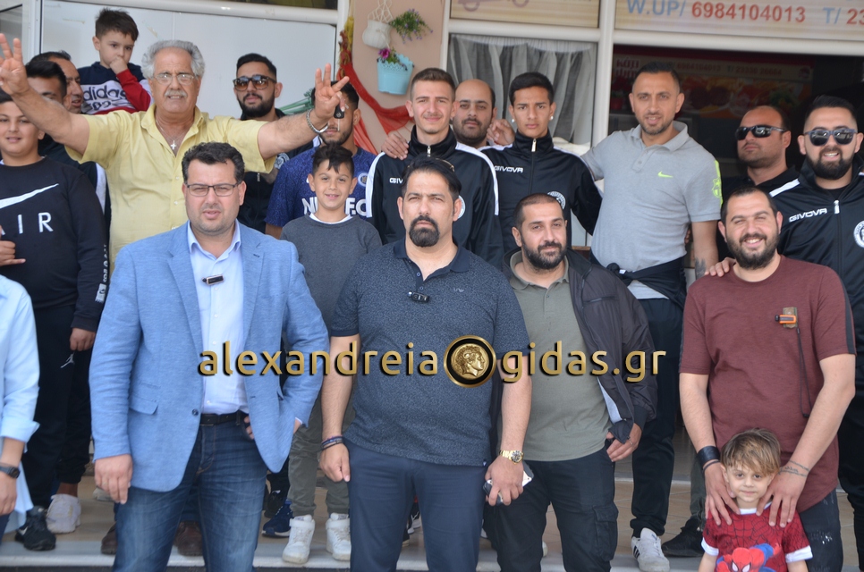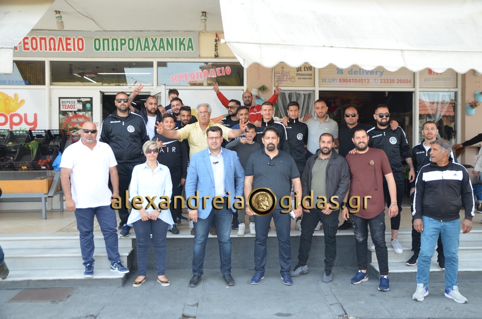 Κοντά στην ομάδα ο υποψήφιος δήμαρχος Αλεξάνδρειας Κώστας Ναλμπάντης που με τη σειρά του έδωσε τις δικές του ευχές για καλή επιτυχία στη διοίκηση και τους ποδοσφαιριστές του ΠΑΟΚ.
