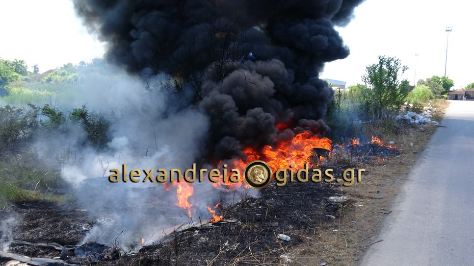 Το πρωί του Σαββάτου 18 Μαΐου άγνωστοι έκαψαν λάστιχα και χόρτα στην στροφή από την Αλεξάνδρεια προς τον Σχοινά απέναντι από το δημοτικό στάδιο της Αλεξάνδρειας.