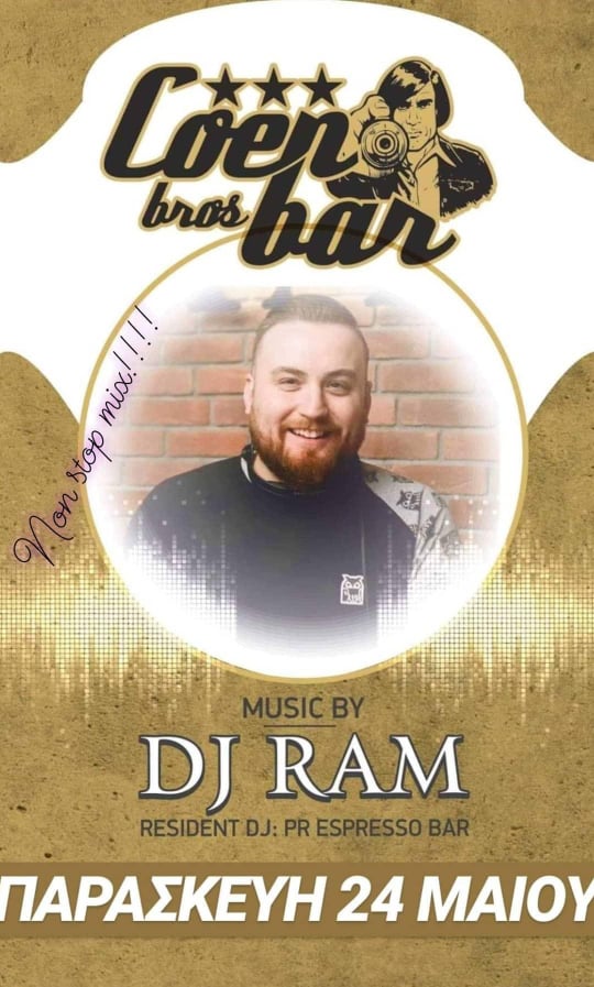 Στα πλαίσια της συνέχειας των εκδηλώσεων που διοργανώνει κάθε εβδομάδα το COEN Bar στη γωνία του πεζόδρομου Αλεξάνδρειας, απόψε Παρασκευή 24 Μαΐου το μαγαζί υποδέχεται τον Dj RAM, τον resident dj του PR ESPRESSO Bar στη Θεσσαλονίκη.