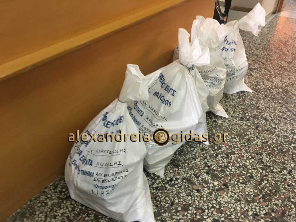 Το δημαρχείο της Αλεξάνδρειας γέμισε με σάκους οι οποίοι περιέχουν το εκλογικό υλικό και όσοι επισκέφτηκαν το κτίριο του δημαρχείου τις προηγούμενες ημέρες μπόρεσαν να τους δουν.
