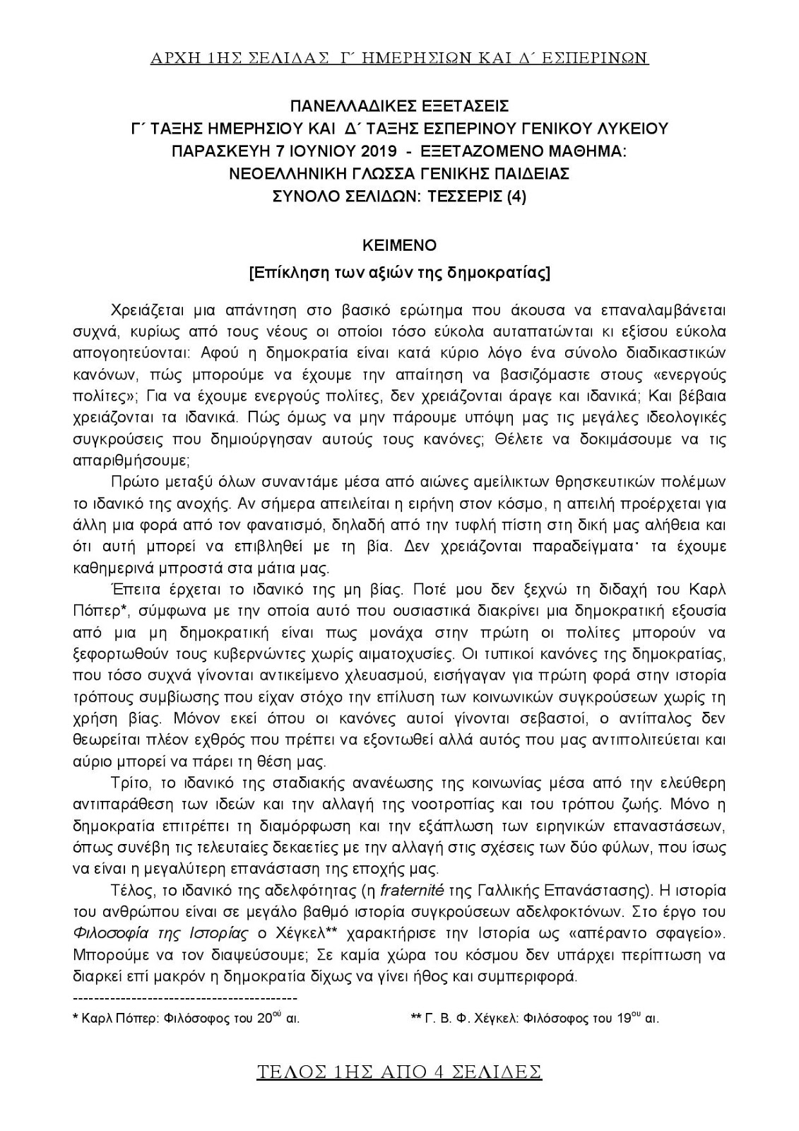 Δείτε το σημερινό θέμα το μάθημα των Νέων Ελληνικών και Έκθεσης (σε λίγο οι απαντήσεις):