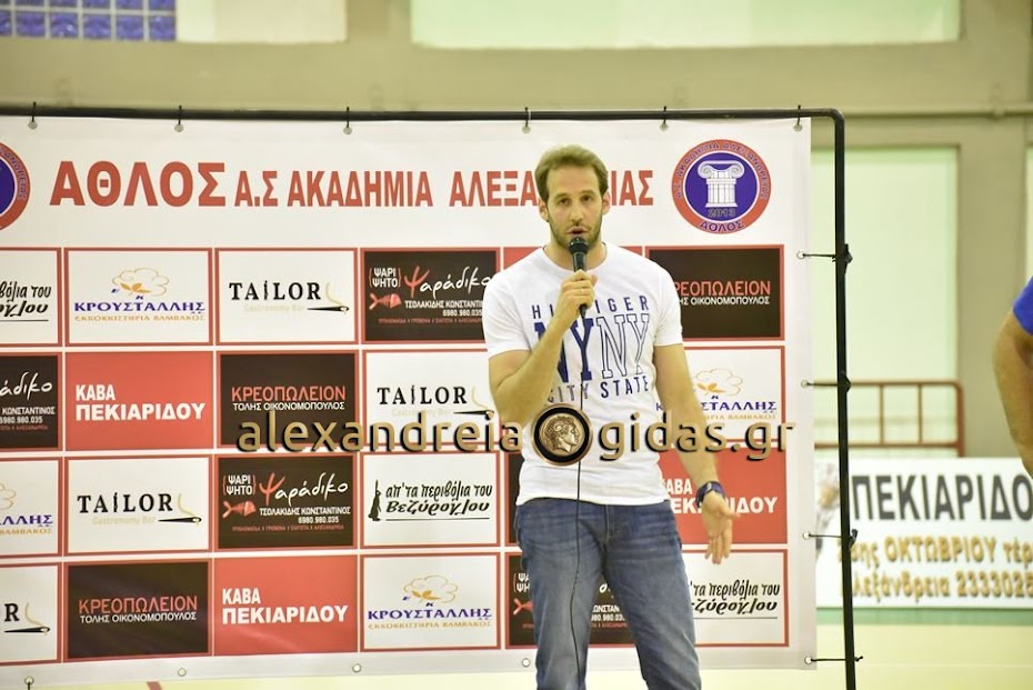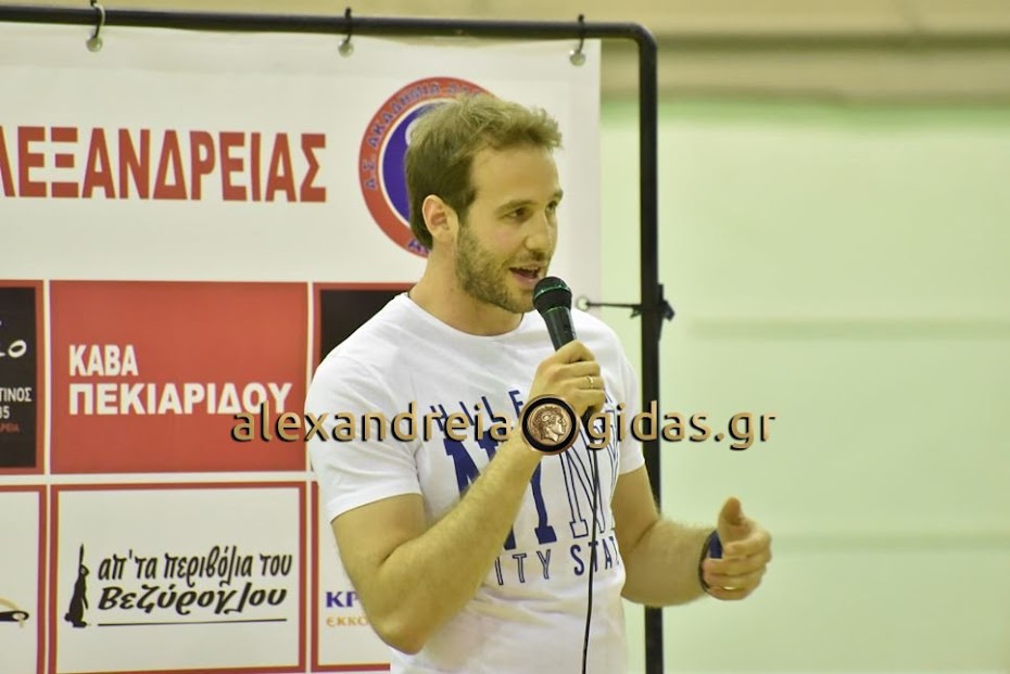 Ο Βασίλης Αγγέλης παρουσίασε στο κατάμεστο κλειστό του 2ου Γυμνασίου – Λυκείου Αλεξάνδρειας όλα τα τμήματα της ακαδημίας ξεκινώντας από το μικρότερο και φτάνοντας στο μεγάλο τμήμα του ΑΘΛΟΥ.