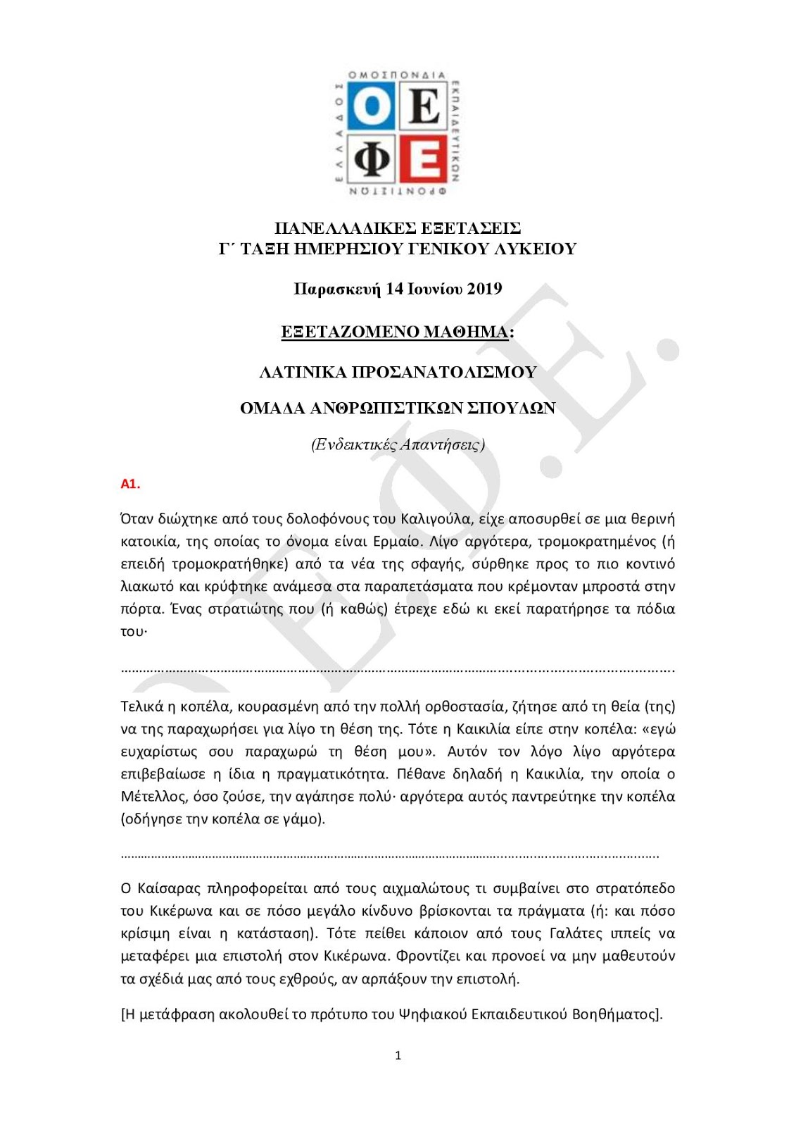 Σας παρουσιάζουμε παρακάτω τις απαντήσεις στο σημερινό θέμα πανελλαδικών των Λατινικών (μπορείτε να διαβάσετε το θέμα κάνοντας κλικ ΕΔΩ)