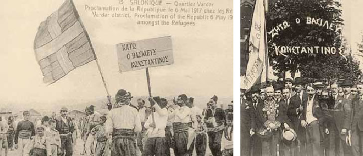 Όλα αυτά κατά την πρώτη περίοδο του Εθνικού Διχασμού διανθισμένα με εμφύλιες συγκρούσεις , εκτοπισμούς , διαπομπεύσεις (όπως του Εμ. Μπενάκη), εξορίες αλλά και δολοφονίες , όπως η ειδεχθής δολοφονία του Ίωνα Δραγούμη.