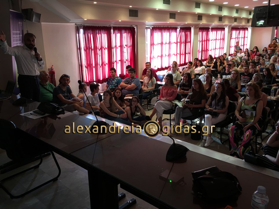 Στην κατάμεστη αίθουσα του Επιμελητηρίου Βεροίας ο Σύμβουλος Επαγγελματικού Προσανατολισμού κ. Κ. Κότιος ενημέρωσε τους μαθητές των Λυκείων του Νομού για τις αλλαγές στο νέο τύπο λυκείου αλλά και στο εξεταστικό σύστημα.