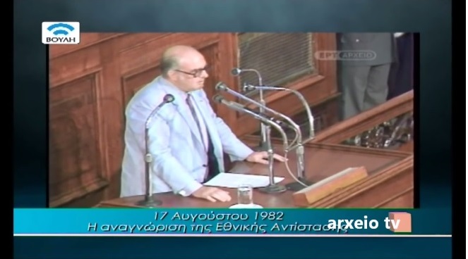 Το αποφασιστικό βήμα όμως θα κάνει ο Ανδρέας Παπανδρέου όταν ως Πρωθυπουργός της πρώτης Κυβέρνησης του ΠΑΣΟΚ θα ψηφίσει στις 17 Αυγούστου 1982 με το νόμο 1285 του 1982 την αναγνώριση της εθνικής αντίστασης και θα βάλει τέλος στο διαχωρισμό μεταξύ των Ελλήνων σε εθνικόφρονες και προδότες.