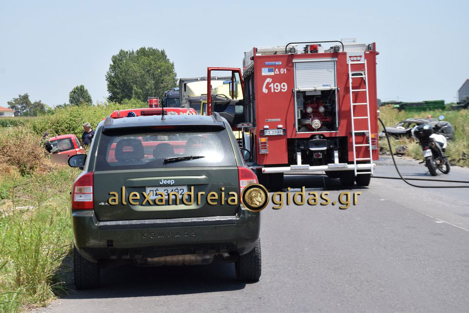 Σοβαρό τροχαίο σημειώθηκε το μεσημέρι της Πέμπτης 4 Ιουλίου 2019 στην Π.Ε.Ο. Βέροιας – Θεσσαλονίκης στο ύψος του Παλαιοχωρίου του δήμου Αλεξάνδρειας.
