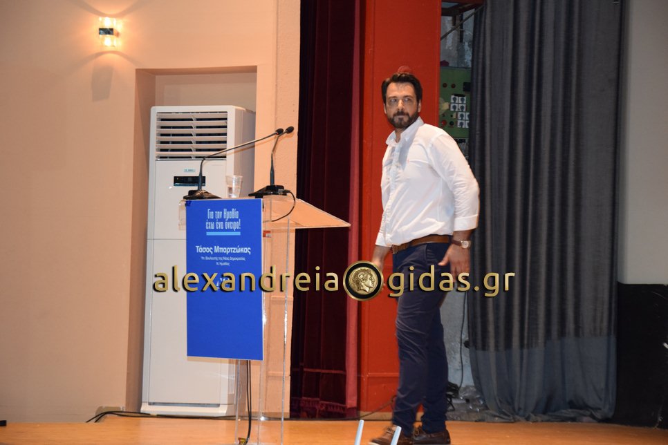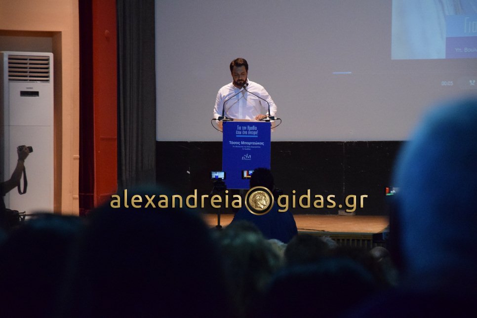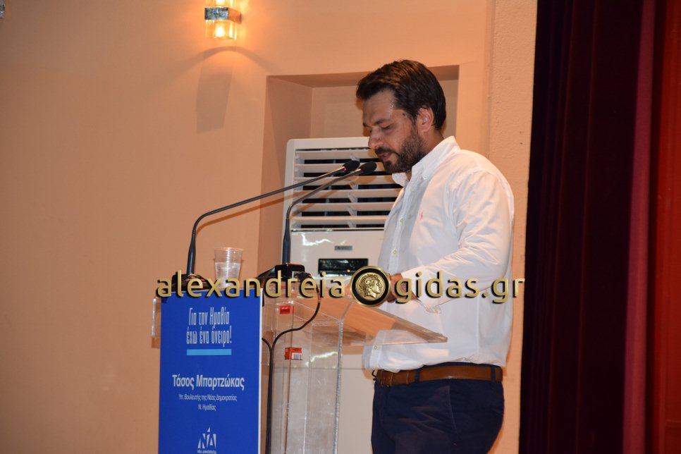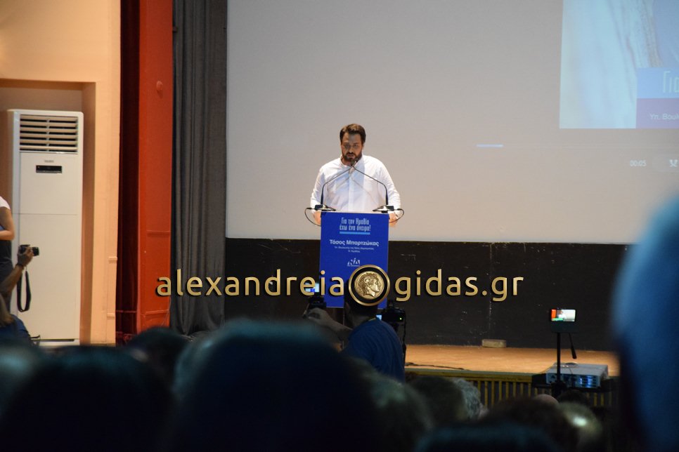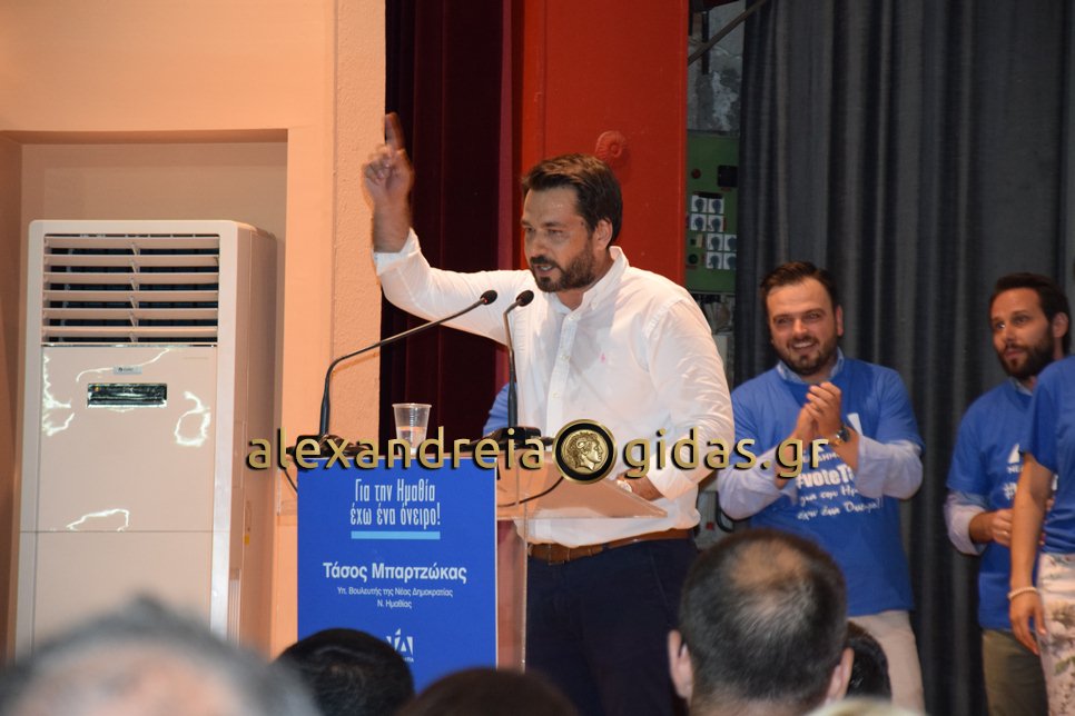 Η κεντρική πολιτική ομιλία του Τάσου Μπαρτζώκα έγινε σε ιδιαίτερα αισιόδοξο κλίμα, καθώς όλοι οι συμμετέχοντες είχαν την πεποίθηση ότι η Κυριακή θα αναδείξει τη Νέα Δημοκρατία πρώτη δύναμη και τον Τάσο Μπαρτζώκα βουλευτή της Ημαθίας.