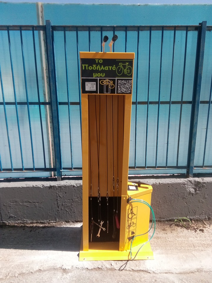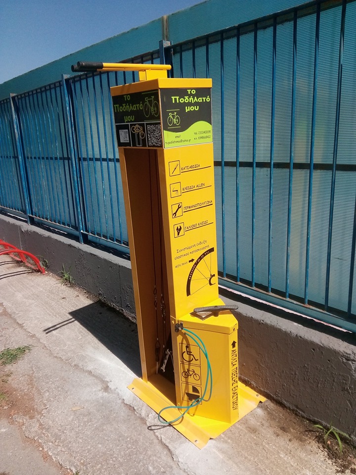Παρόλο που κλάπηκαν τα εργαλεία και βανδαλίστηκε, εμείς συνεχίζουμε να πιστεύουμε ότι, ένας τέτοιος σταθμός επισκευής, είναι απαραίτητος για μια πόλη όπου κυκλοφορούν τόσα πολλά ποδήλατα. Από σήμερα (σ.σ. Πέμπτη 4 Ιουλίου 2019) βρίσκεται στο δημοτικό κολυμβητήριο.