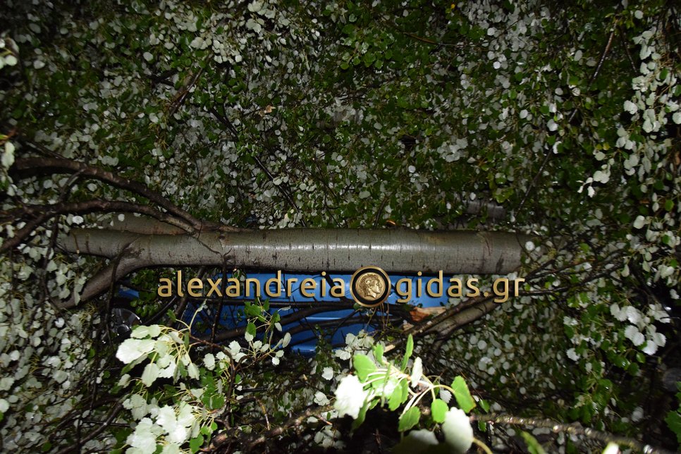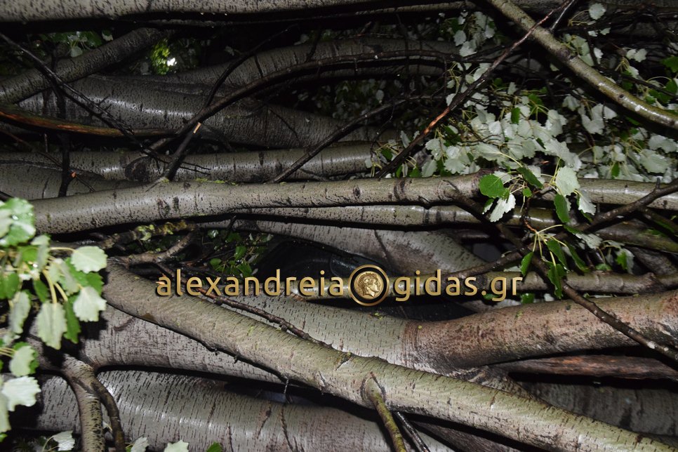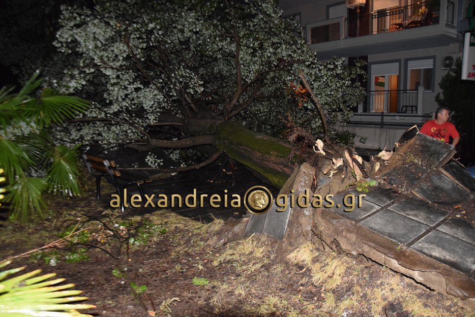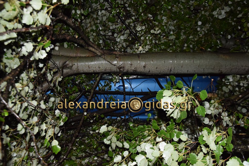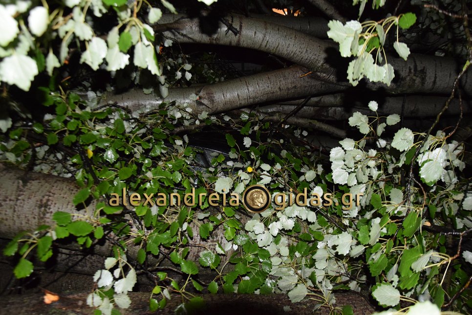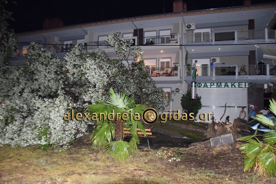 Μεγάλες ήταν οι ζημιές στην οδό Ναούσης στην Αλεξάνδρεια μπροστά στο Κέντρο Υγείας της πόλης μας.