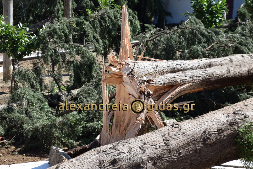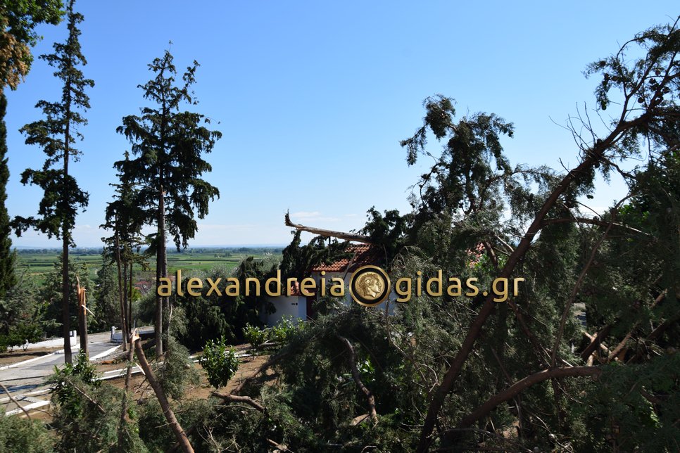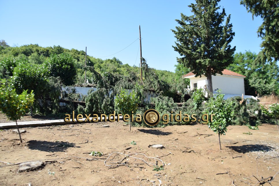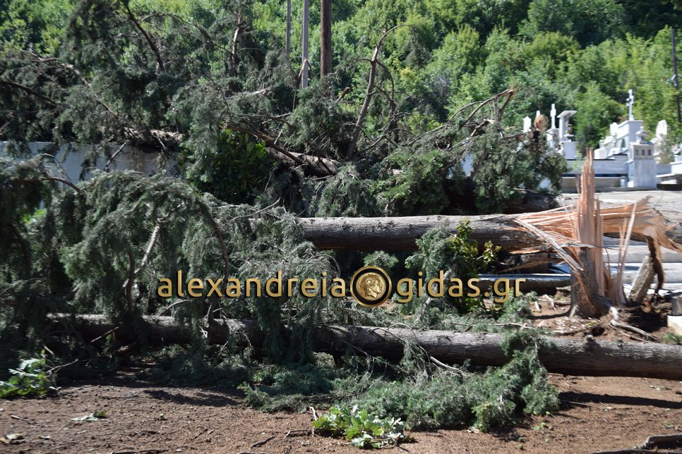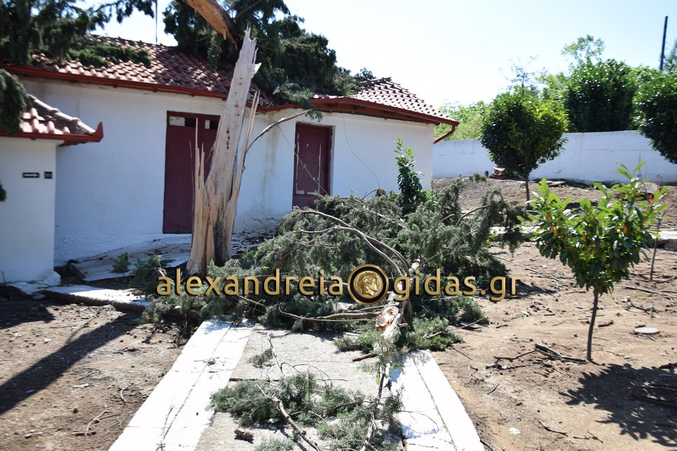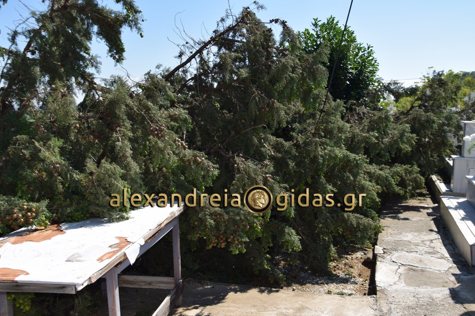 Στα κοιμητήρια και στον Ιερό Ναό Αγίου Γεωργίου Αγκαθιάς η χτεσινή καταιγίδα έριξε αρκετά δέντρα προκαλώντας ζημιές τόσο στους χώρους των κοιμητηρίων όσο και στους χώρους του ναού.