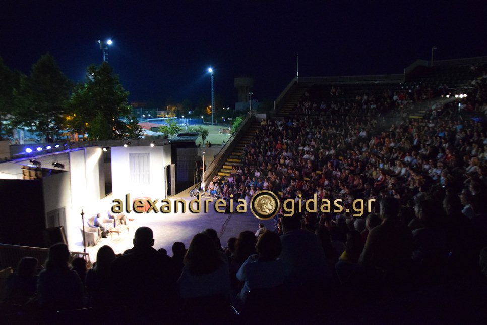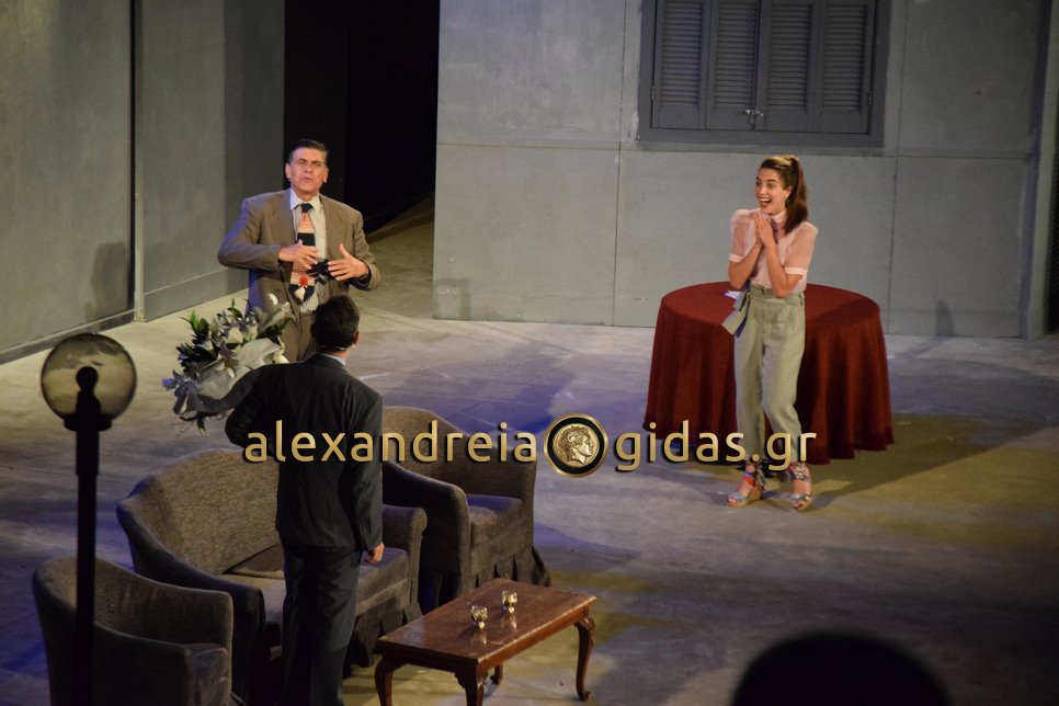 Με επιτυχία παρουσιάζεται αυτήν την ώρα στο Αμφιθέατρο Αλεξάνδρειας η θεατρική παράσταση «Οι Γαμπροί της Ευτυχίας» στα πλαίσια των εκδηλώσεων του δήμου Αλεξάνδρειας για το καλοκαίρι του 2019 σε σκηνοθεσία του Γιάννη Μπέζου.