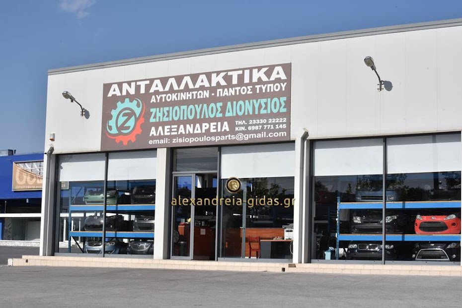 Η επιχείρηση ΖΗΣΙΟΠΟΥΛΟΣ ΔΙΟΝΥΣΙΟΣ βρίσκεται στο 1ο χλμ Αλεξάνδρειας-Νησελίου στην Αλεξάνδρεια. Μεταφέρθηκε στο νέο πανέμορφο χώρο πριν λίγο καιρό από την Αγκαθιά στην οποία λειτουργεί από το 2014, δίνοντας λύσεις που αφορούν τα ανταλλακτικά αυτοκινήτων παντός τύπου, στην ευρύτερη περιοχή .