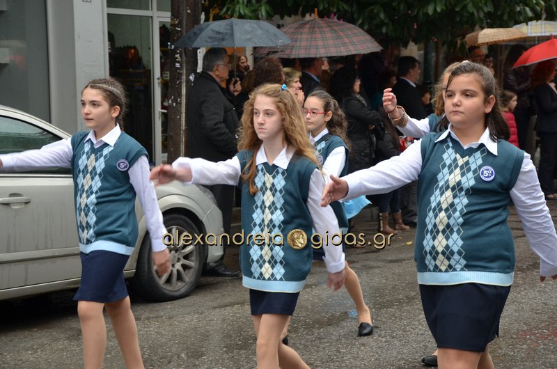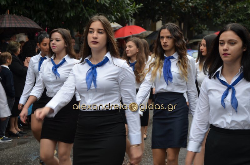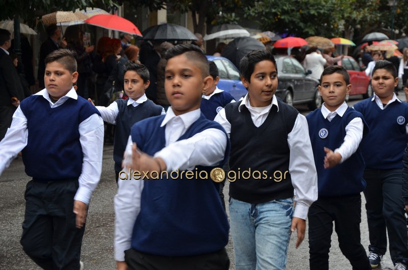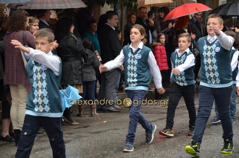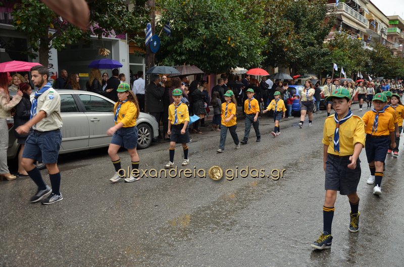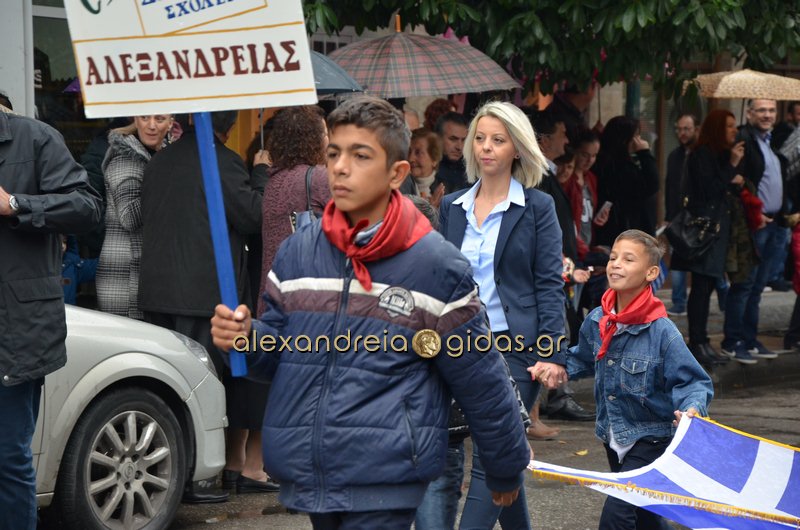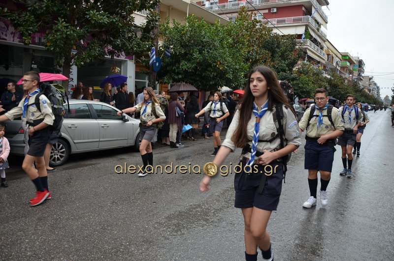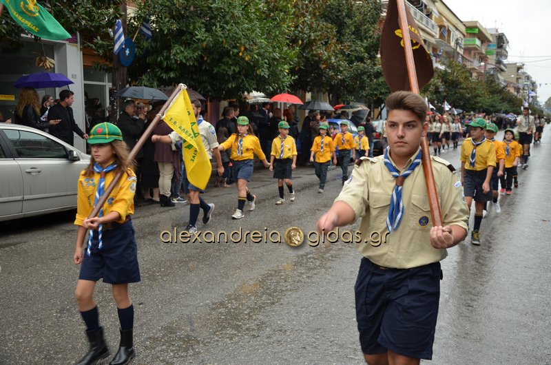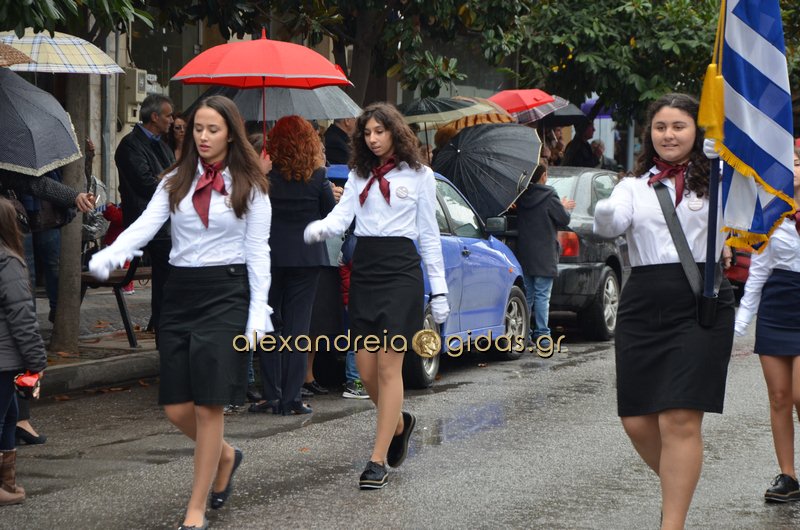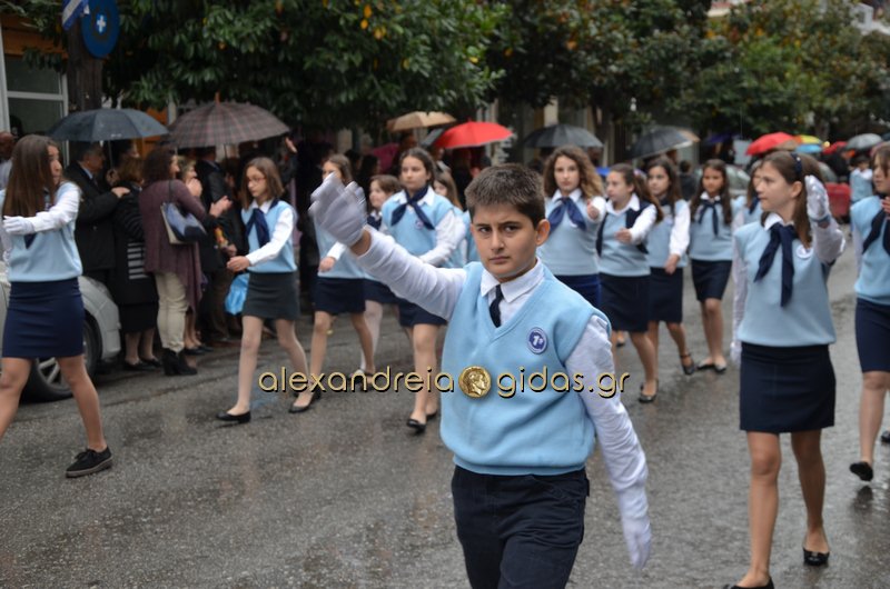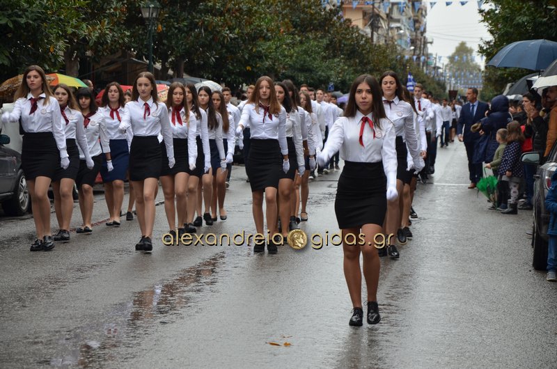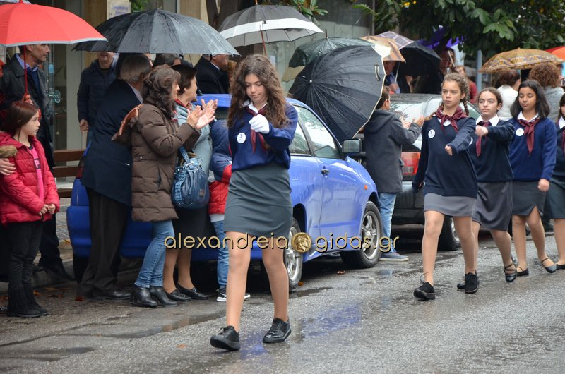 Το θερμό χειροκρότημα του κόσμου που συγκεντρώθηκε στο κέντρο της πόλης απέσπασαν τα σχολεία, οι πολιτιστικοί και αθλητικοί σύλλογοι, οι Πρόσκοποι Αλεξάνδρειας και ο στρατός που παρέλασαν στην Βετσοπούλου.