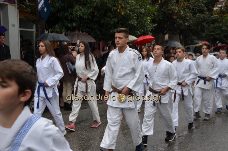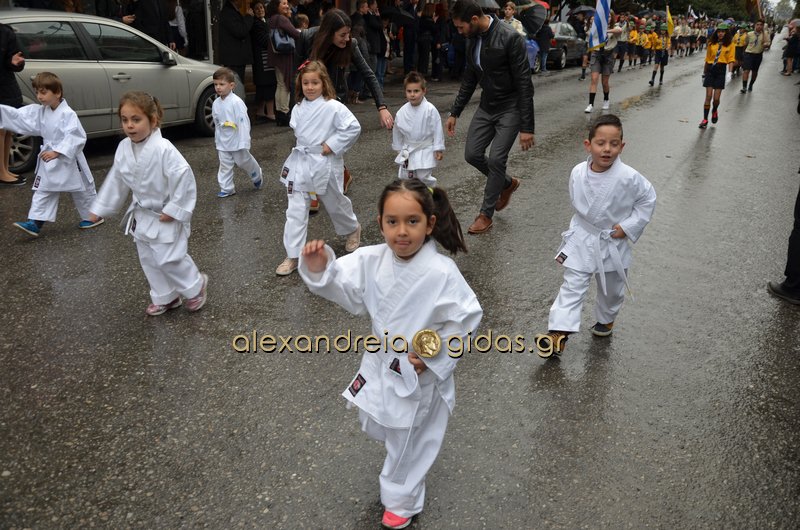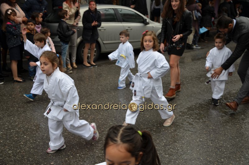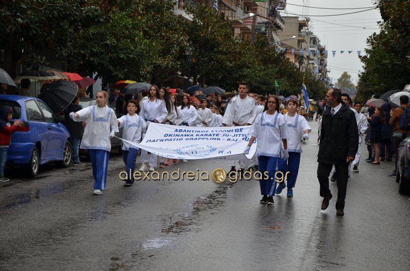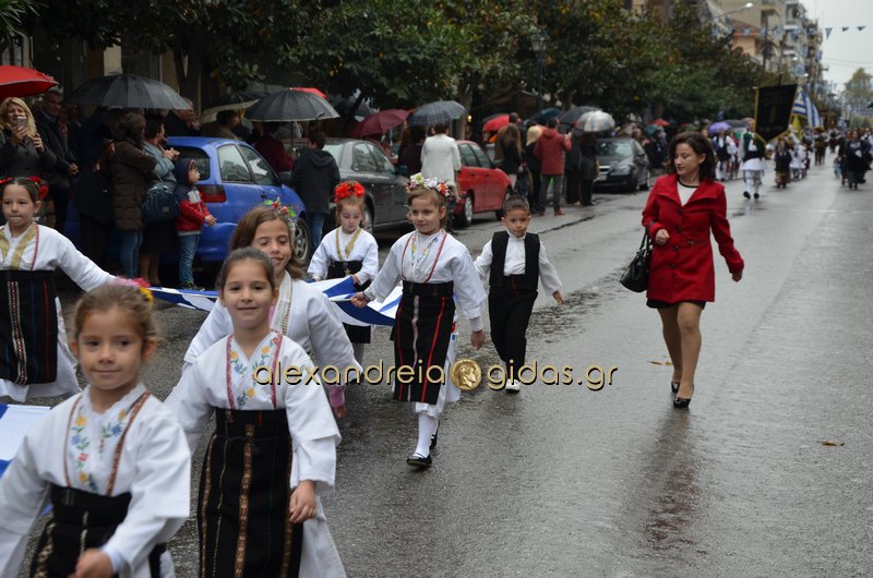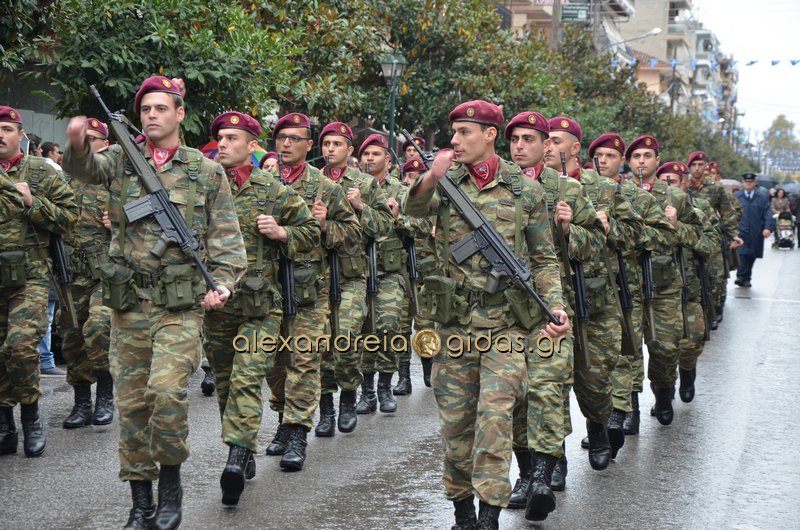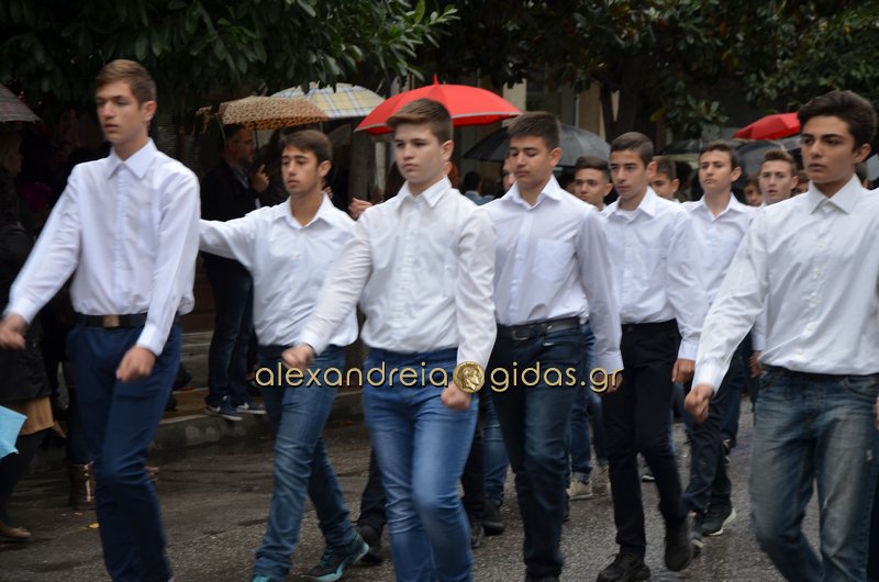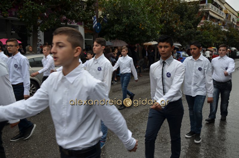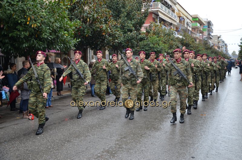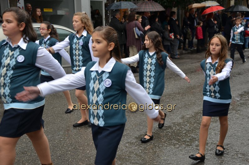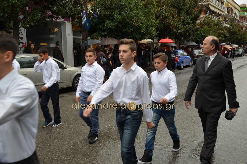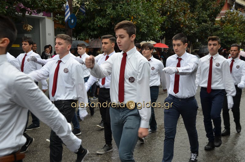 Το θερμό χειροκρότημα του κόσμου που συγκεντρώθηκε στο κέντρο της πόλης απέσπασαν τα σχολεία, οι πολιτιστικοί και αθλητικοί σύλλογοι, οι Πρόσκοποι Αλεξάνδρειας και ο στρατός που παρέλασαν στην Βετσοπούλου.