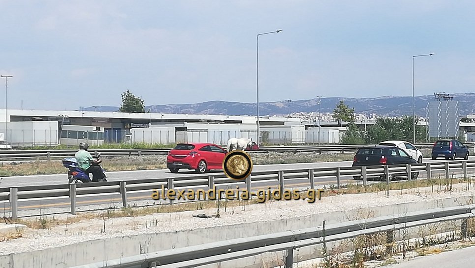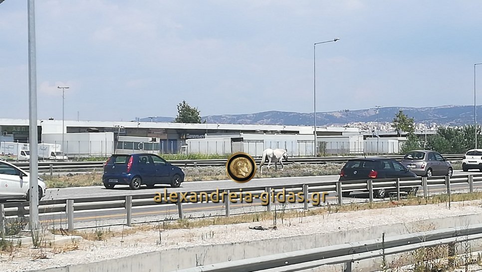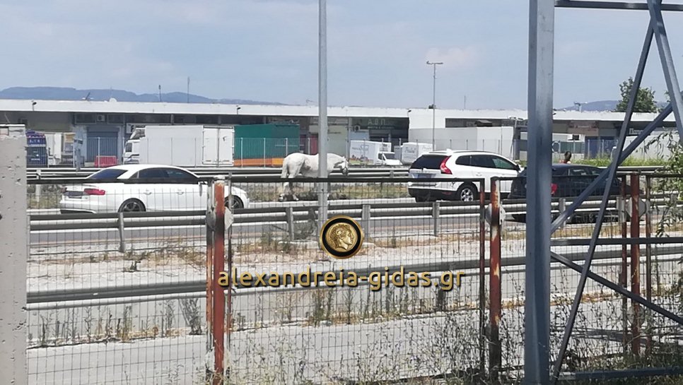 Ένα ατάραχο λευκό άλογο έκοβε βόλτες βγαίνοντας μάλιστα πολλές φορές και στη μέση του δρόμου.