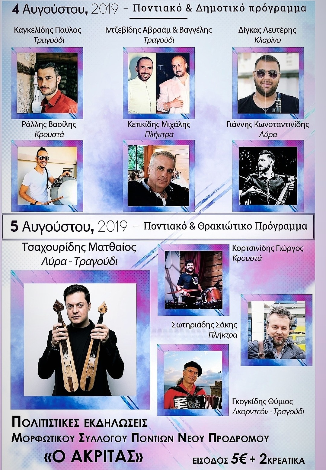 Πολιτιστικές εκδηλώσεις του Συλλόγου Ποντίων Νέου Προδρόμου “Ο Ακρίτας” (πρόγραμμα)