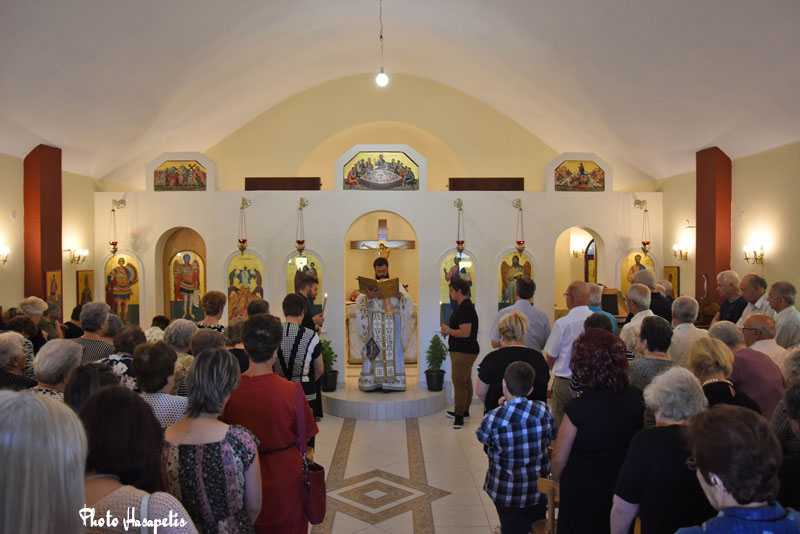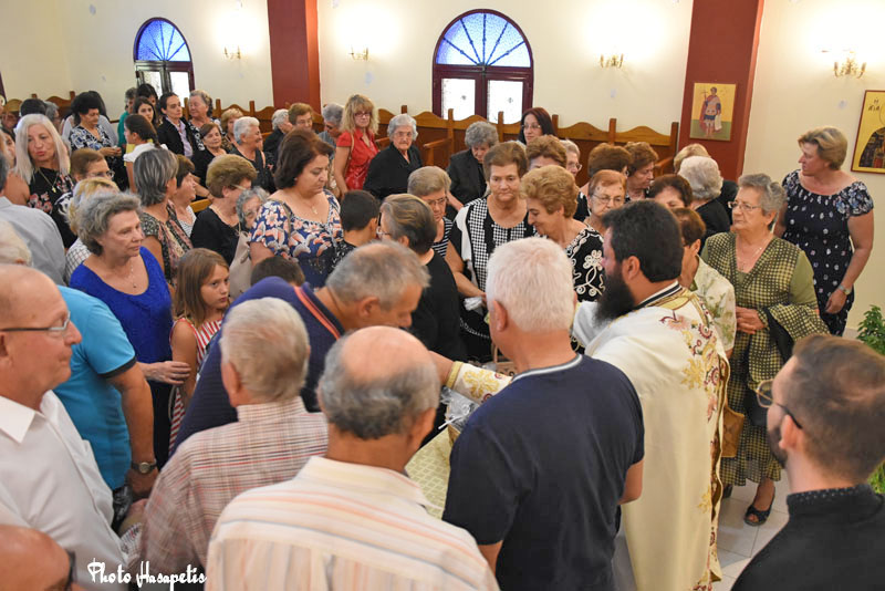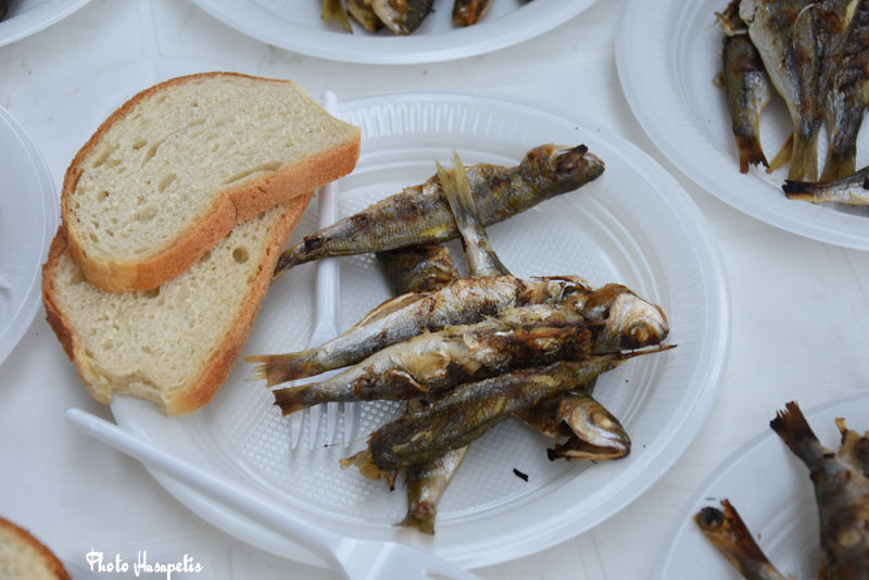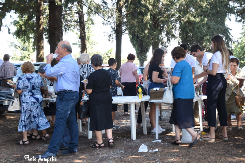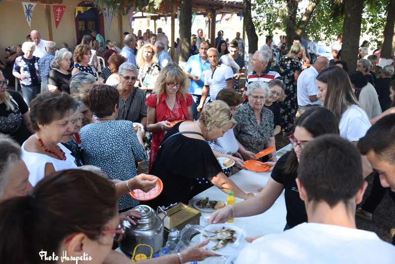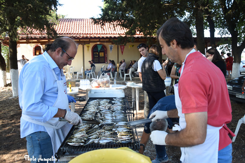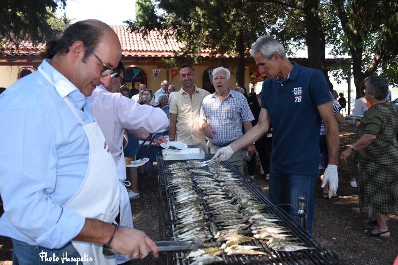 Μετά τη θεία Λειτουργία αφού διαβάστηκε η ευχή για τα σταφύλια, όλοι οι παρευρισκόμενοι στο προαύλιο του εξωκλησιού γεύθηκαν τα ψημένα ψάρια που προσέφερε η ενορία.