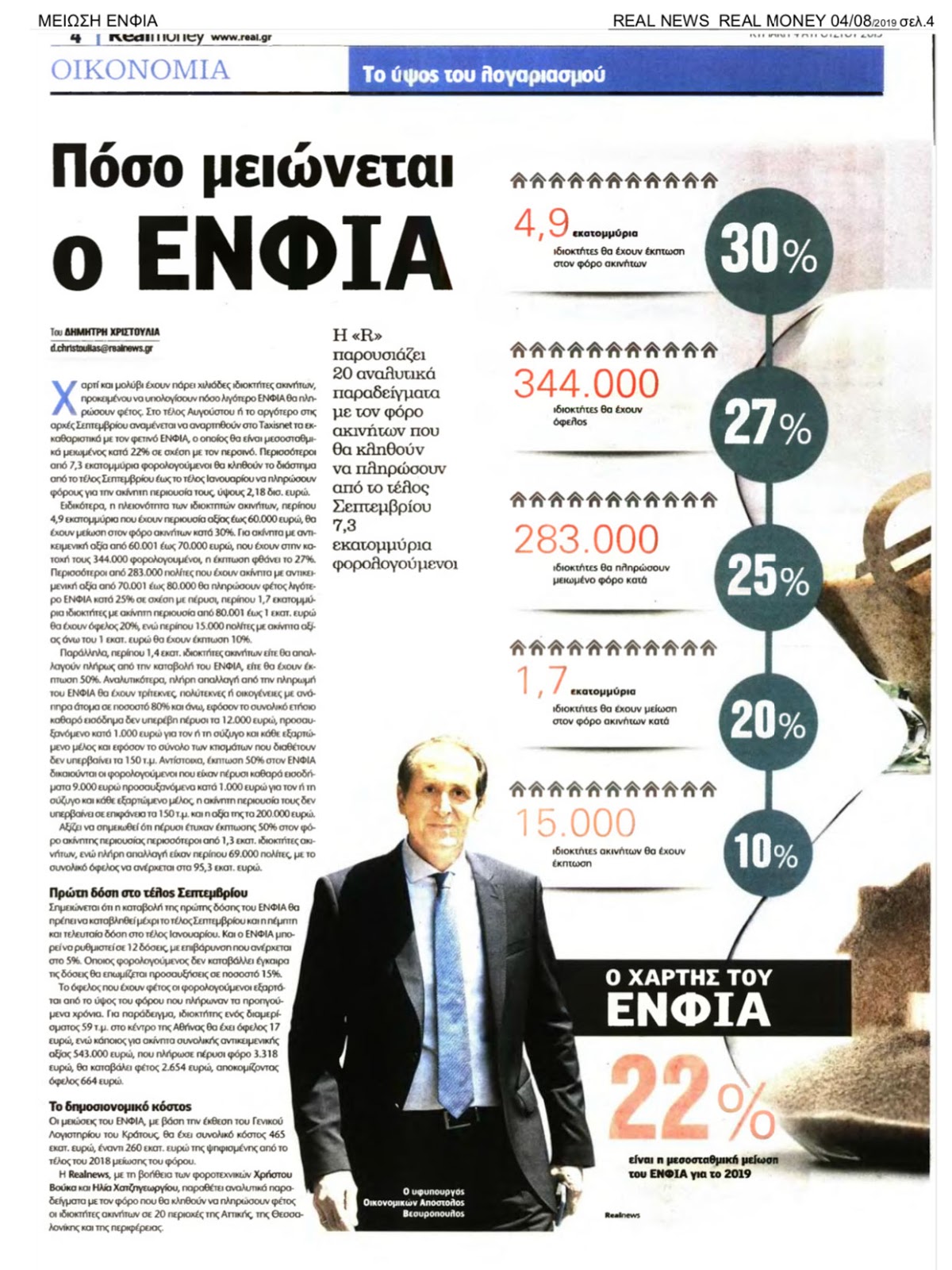 Η εφημερίδα Real News στο φύλλο της Κυριακής παρουσίασε ειδικό αφιέρωμα στη μείωση του ΕΝΦΙΑ.