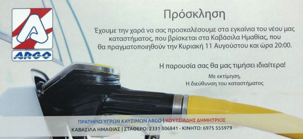 Νέο ξεκίνημα για το πρατήριο υγρών καυσίμων ARGO στα Καβάσιλα του δήμου Αλεξάνδρειας.