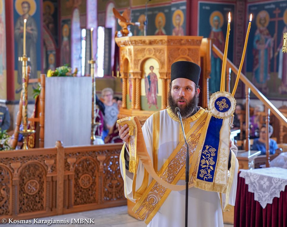 Την Ιερά Εικόνα υποδέχτηκε ο Σεβασμιώτατος Μητροπολίτης Βεροίας, Ναούσης και Καμπανίας κ. Παντελεήμων, ο οποίος στη συνέχεια χοροστάτησε στον Εσπερινό και κήρυξε τον θείο λόγο. Ο Σεβασμιώτατος εξέφρασε τις ευχαριστίες του προς τον Μακαριώτατο Πατριάρχη Ιεροσολύμων κ. κ. Θεόφιλο, με την άδεια και την ευλογία του οποίου μεταφέρθηκε η Ιερά Εικόνα της «Παναγίας του Όρους των Ελαιών», ενόψει της Πανηγύρεως του Ιερού Ναού, ενώ παράλληλα ευχαρίστησε και τον Ιεροδιάκονο π. Δημήτριο Μπίζα,ο οποίος και την συνόδευσε.