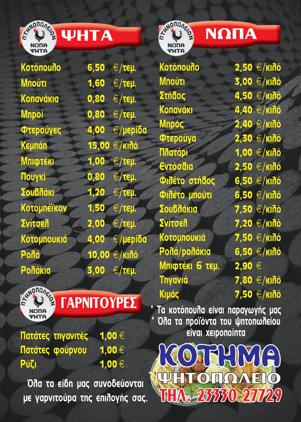 Από τις 8 το πρωί θα σας καλημερίσουν με χαμόγελο, θα σας εξυπηρετήσουν άμεσα και κυρίως με κοτόπουλα παραγωγής της επιχείρησης η οποία υφίσταται από το 1974 στον χώρο.