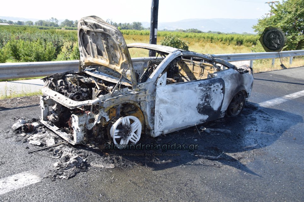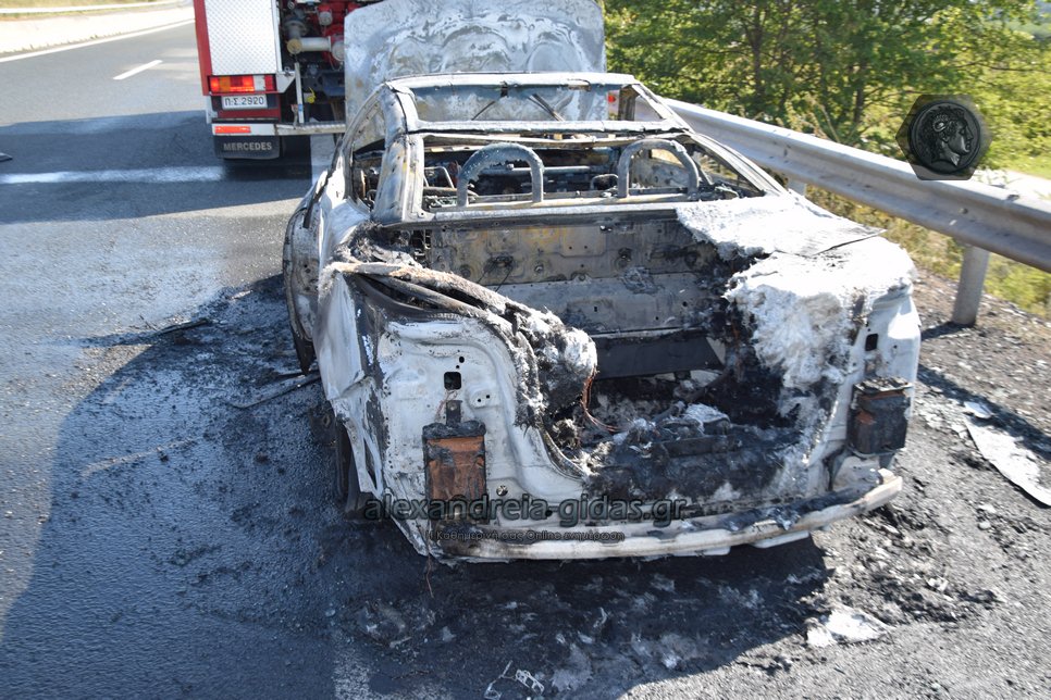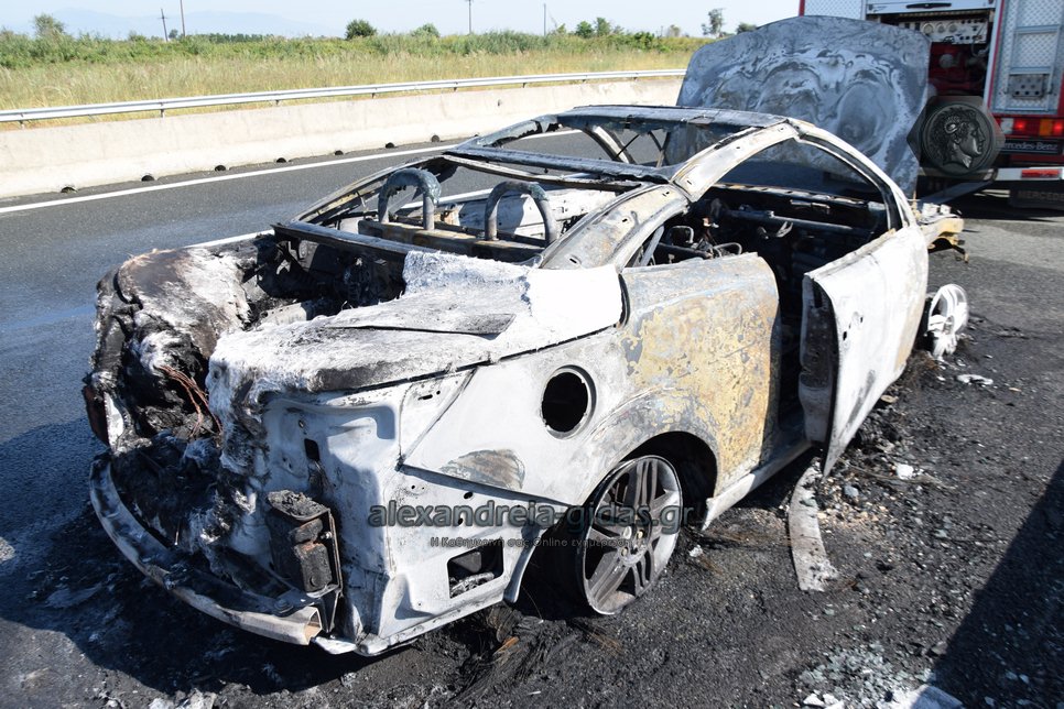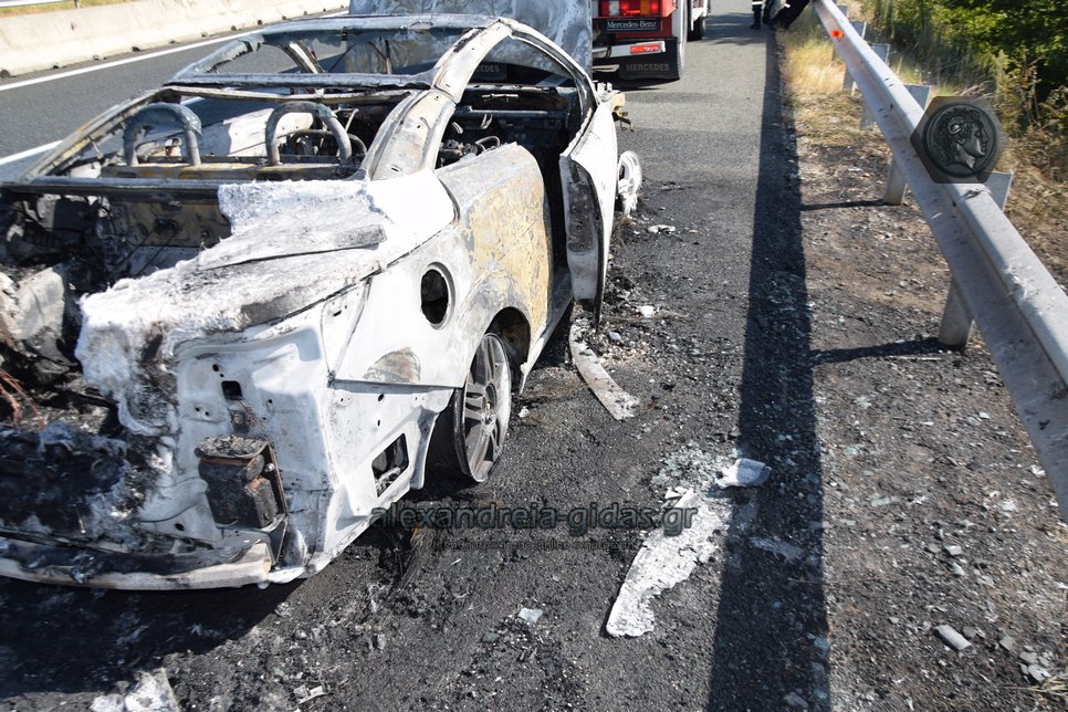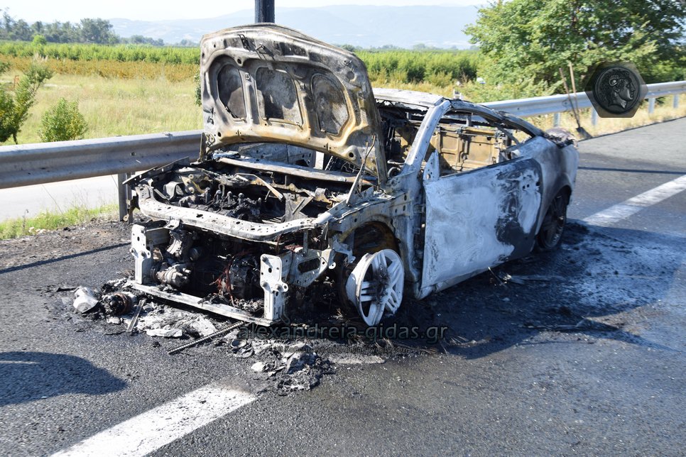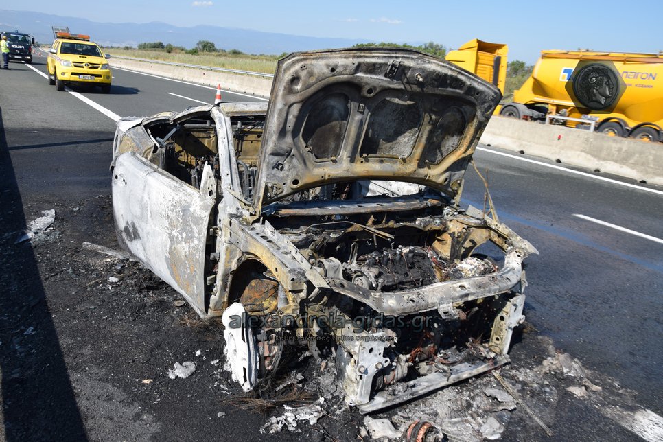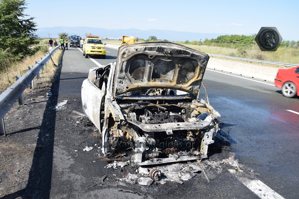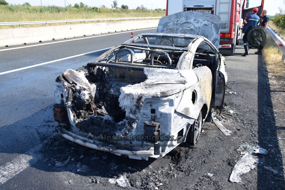 Ι.Χ. αυτοκίνητο κάηκε ολοσχερώς στην Εγνατία Οδό το πρωί της Δευτέρας 2 Σεπτεμβρίου.