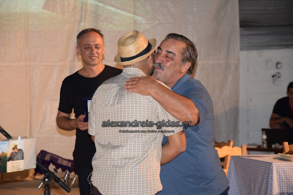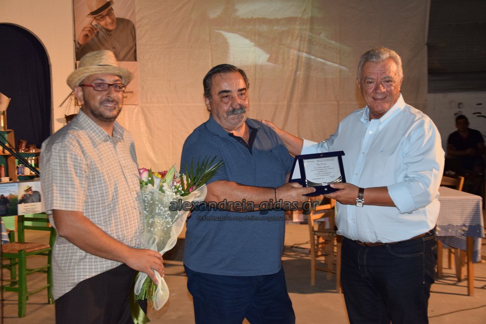 Λίγο πριν την έναρξη της χτεσινής πετυχημένης παράστασης «Ικλουγιές Γιέντι» του Δημήτρη Σαμαρά στο αμφιθέατρο Αλεξάνδρειας (πλούσιο ρεπορτάζ σε επόμενη ανάρτηση), τιμήθηκε για την προσφορά του στον πολιτισμό ο Νίκος Κάργας.