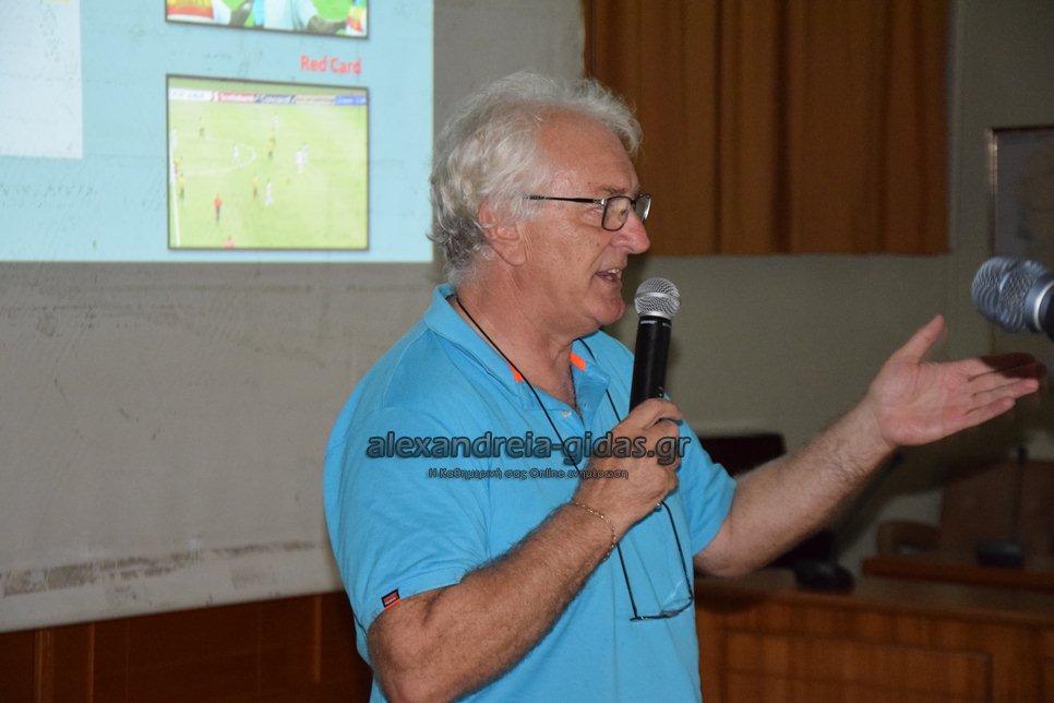 Η ημερίδα πραγματοποιήθηκε στην αίθουσα συνεδριάσεων του δημοτικού συμβουλίου Αλεξάνδρειας με ομιλητή τον πρόεδρο της Επιτροπής Διαιτησίας της ΕΠΣ Ημαθίας Τάσο Χριστοδούλου.