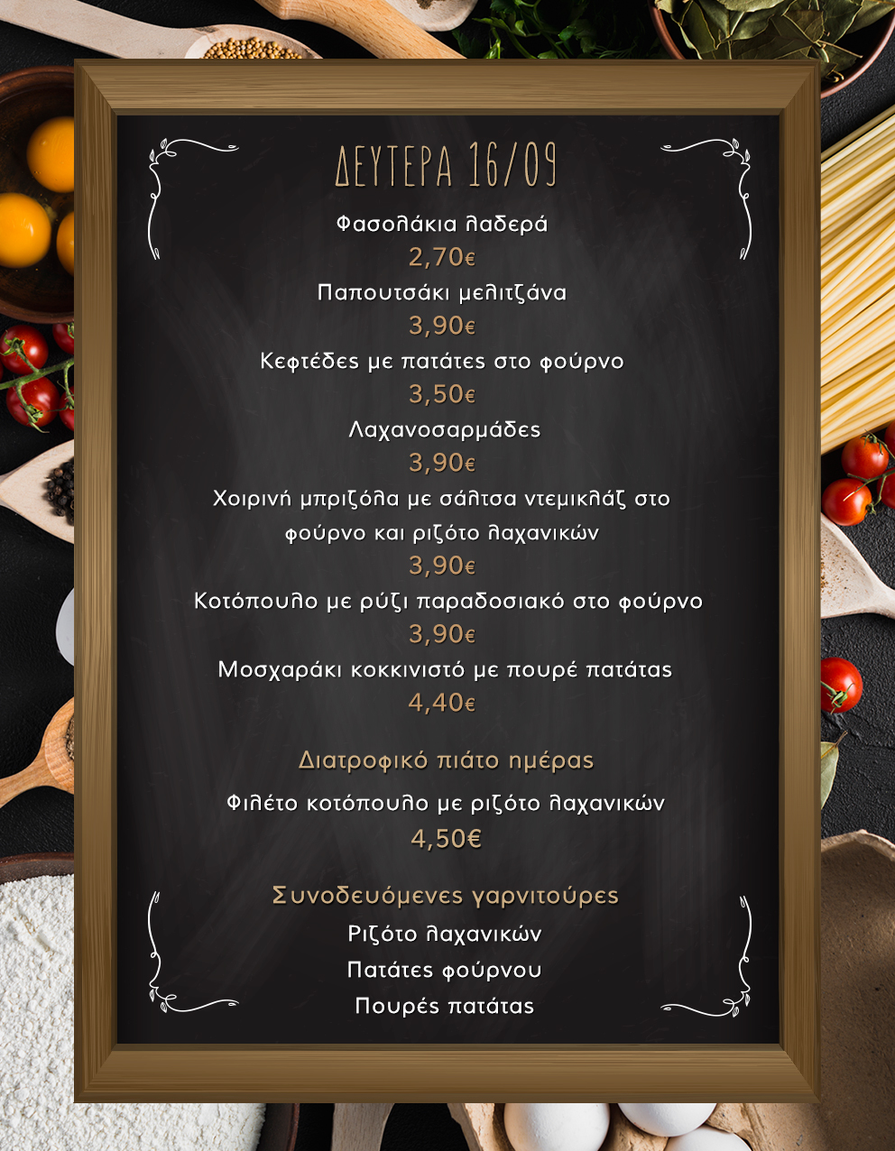 Δείτε το μενού της Δευτέρας 16 Σεπτεμβρίου