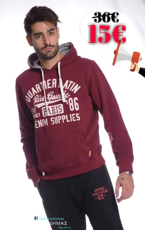 Το Πολυκατάστημα ΠΑΠΑΔΗΜΑΣ συνεχίζει τις εκπλήξεις και σας δίνει την ευκαιρία να αποκτήσετε το αγαπημένο σας φούτερ μπλουζάκι στην εκπληκτική τιμή των 10€!!