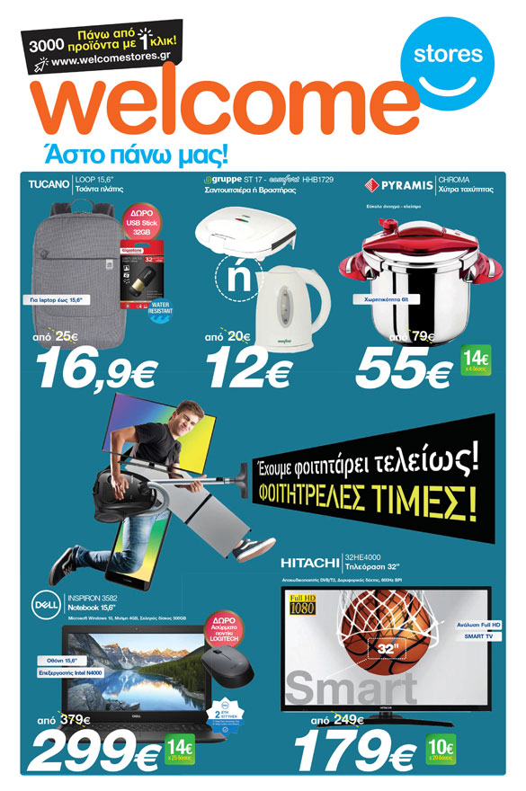 Για λίγες ακόμη ημέρες, τιμές Φοιτητρελές σε όλα τα είδη φυλλαδίου. Μόνο στον ΤΣΙΑΠΑΝΙΤΗ Welcome Stores!