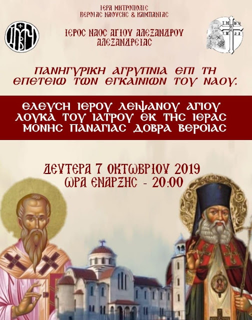 ΤΟΠΙΚΑ 4 Οκτωβρίου, 2019 posted by admin Share Πανηγυρική Αγρυπνία και έλευση λείψανου Αγίου Λουκά στον Ι.Ν. Αγίου Αλεξάνδρου Αλεξάνδρειας Από τον Ιερό Ναό Αγίου Αλεξάνδρου Αλεξάνδρειας ανακοινώθηκαν τα παρακάτω για την Δευτέρα 7 Οκτωβρίου 2019: Αφήστε μια απάντηση Ακύρωση απάντησηςΗ ηλ. διεύθυνση σας δεν δημοσιεύεται. Τα υποχρεωτικά πεδία σημειώνονται με *Σχόλιο * Όνομα Email Ιστότοπος Αποθήκευσε το όνομά μου, email, και τον ιστότοπο μου σε αυτόν τον πλοηγό για την επόμενη φορά που θα σχολιάσω.