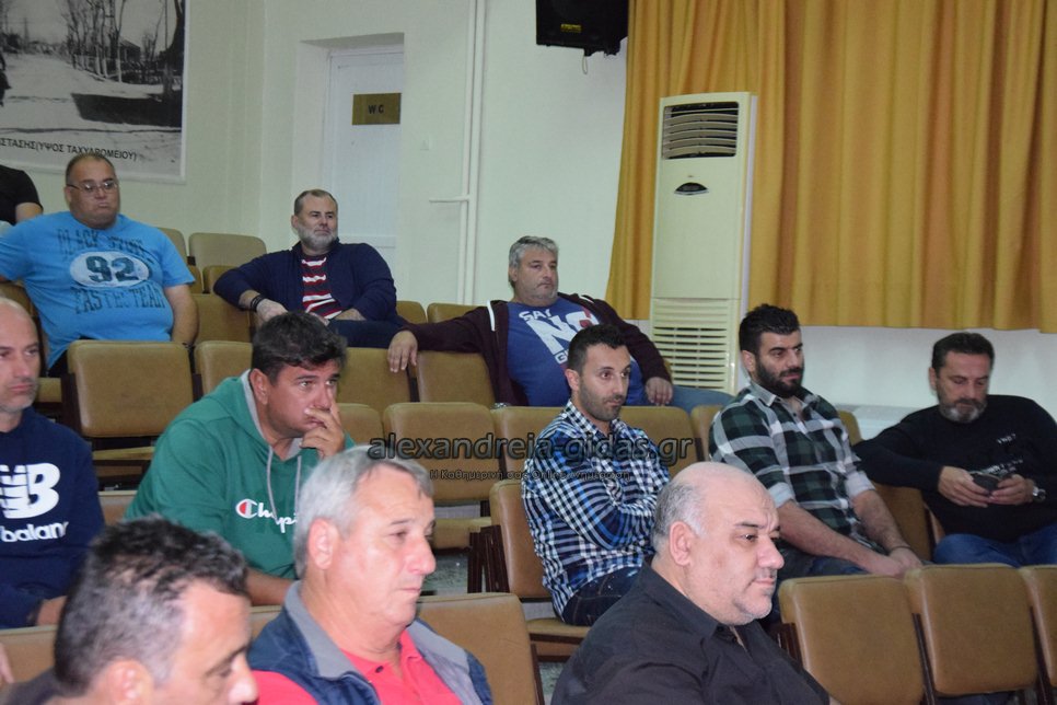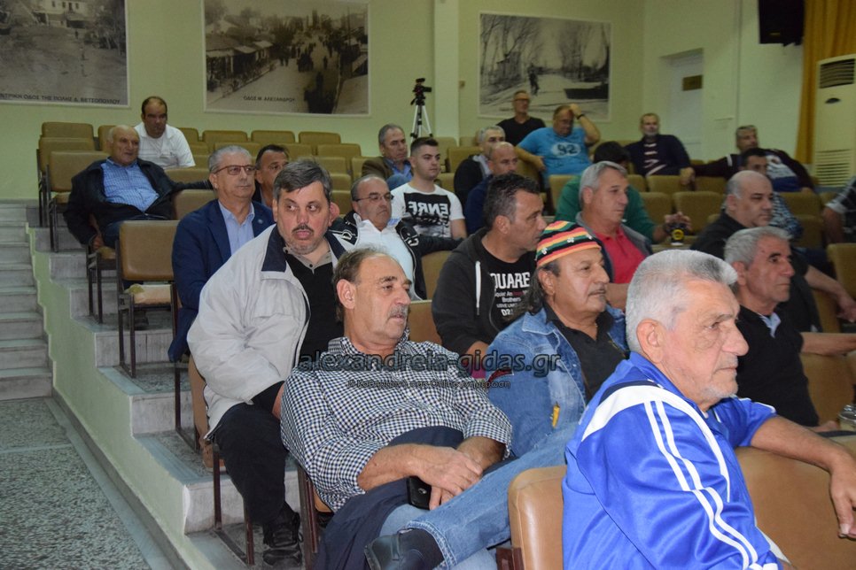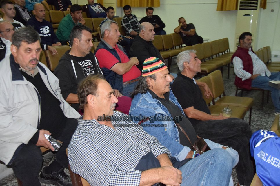 Με κεντρικό ομιλητή τον πρώην πρόεδρο της ομάδας Δημήτρη Σαμαρά ο οποίος ξεκίνησε λέγοντας πως πραγματοποίησε την Γενική Συνέλευση με σκοπό να λειτουργήσει και πάλι η ομάδα της Αλεξάνδρειας ξεκινώντας από το μηδέν και τη Γ’ κατηγορία της ΕΠΣ Ημαθίας.